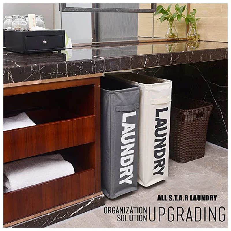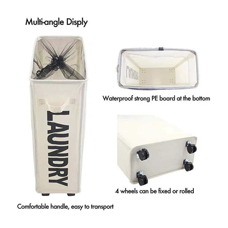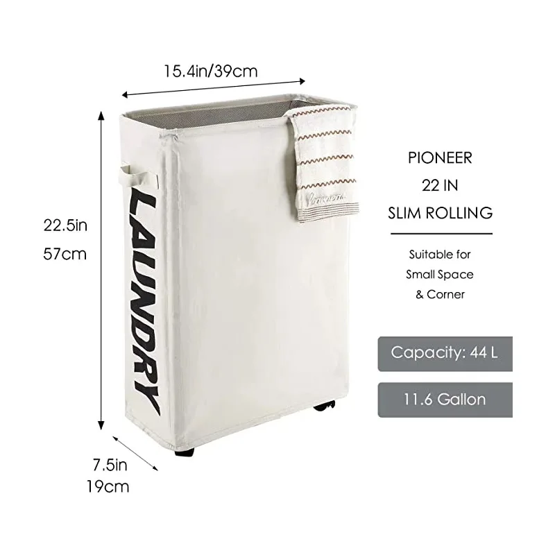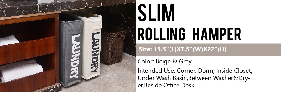 Rozmiar wyświetlacza wąski kosz na pranie wynosi [15.4 „× 7.8” × 22 „], odpowiedni rozmiar na mała przestrzeń między pralką a suszarką lub mała szafka. Składany kosz na pranie można złożyć na przenośny rozmiar 7.3 „x 15.4” x 3.1 „;