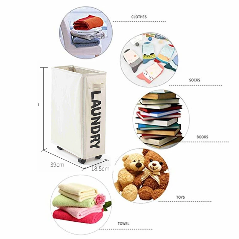 Metalowa rama kształtuje smukły i wysoki kosz na pranie organizator mocno. Smukły kształt kosz do przechowywania łatwo mieści się w wąskiej przestrzeni. Kosz na pranie z kołami zapewnia łatwy ruch;