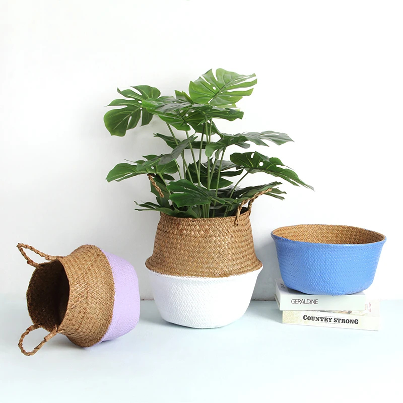 Kosze do przechowywania pranie kosze trawy morskiej wiklina Rattan wieszana doniczka zabawka dom garnek Panier Osier Rangement Cestas Mimbre Bohe