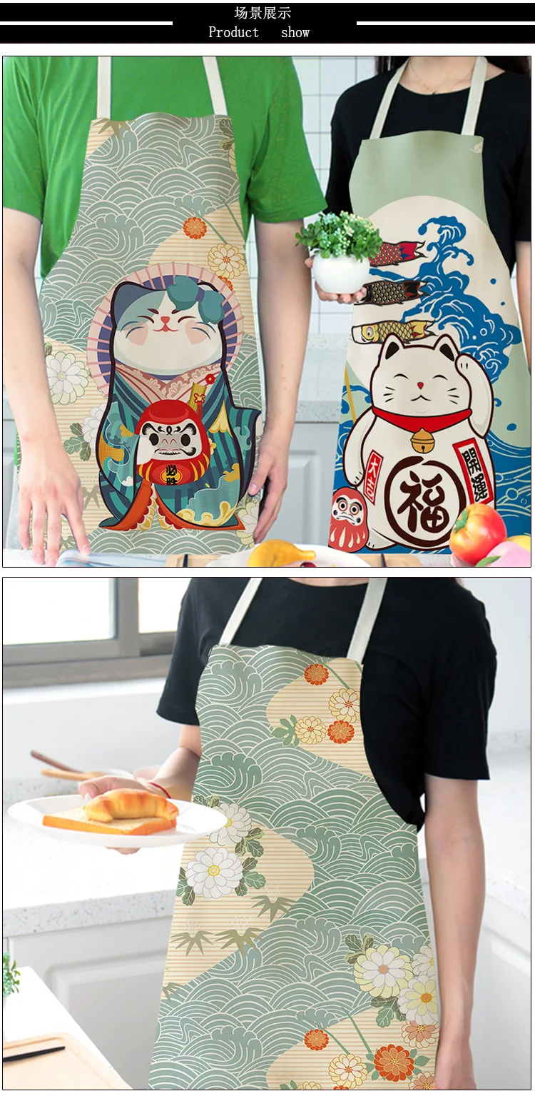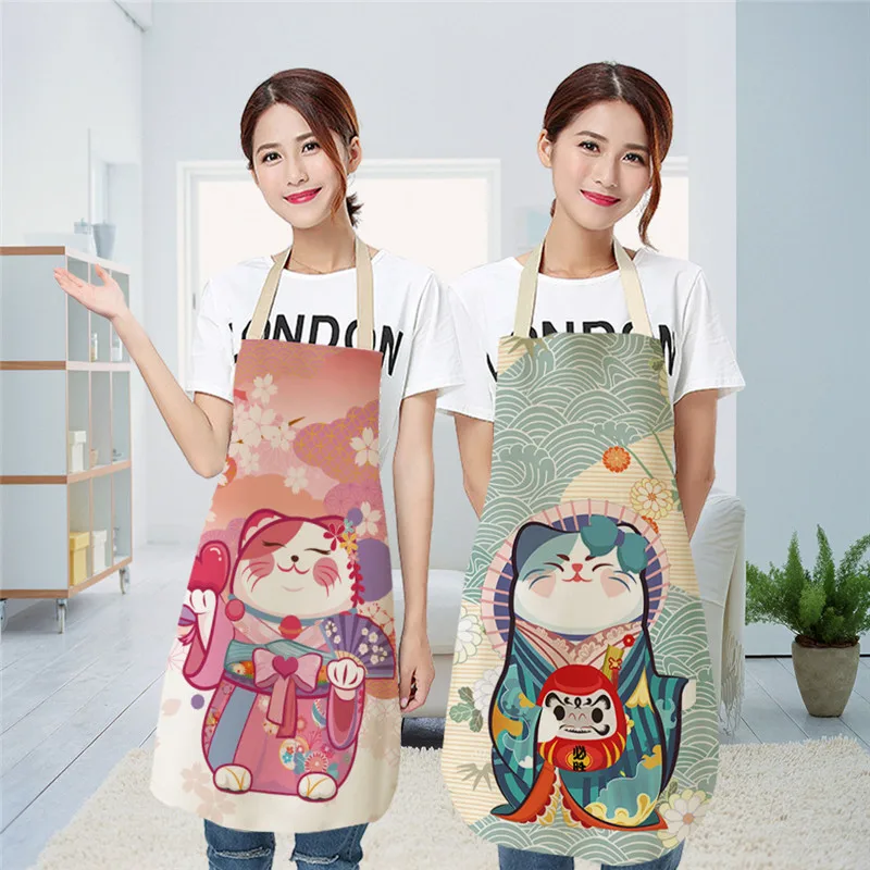 Kot na szczęście fartuch fartuchy kuchenne dla kobiet bawełniane śliniaki domowe fartuszek domowe gotowanie fartuch