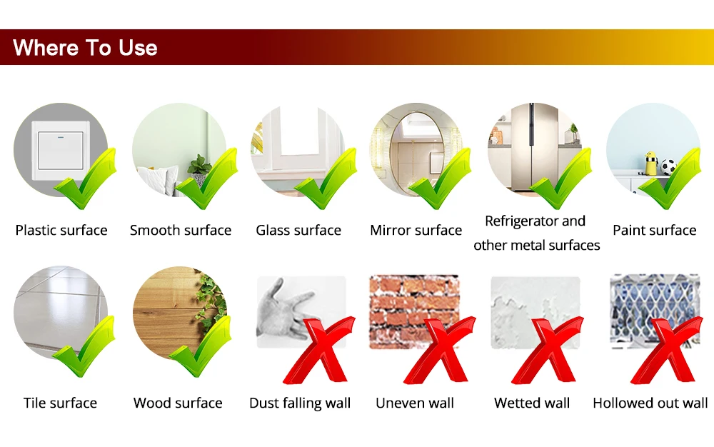1. Upewnij się, że powierzchnia, która ma być przymocowana, jest gładką powierzchnią i że występują wypukłości, mikstury i zmarszczki. Nie trzymaj się.