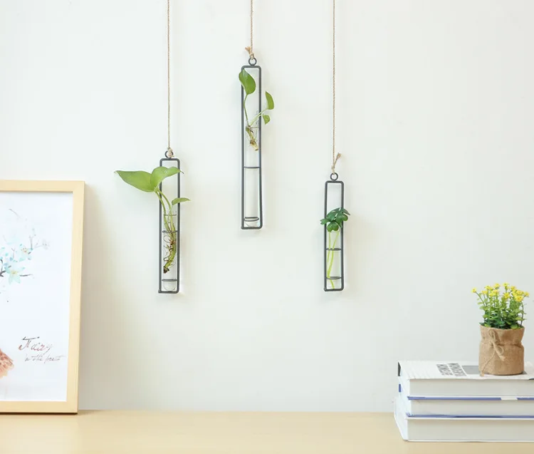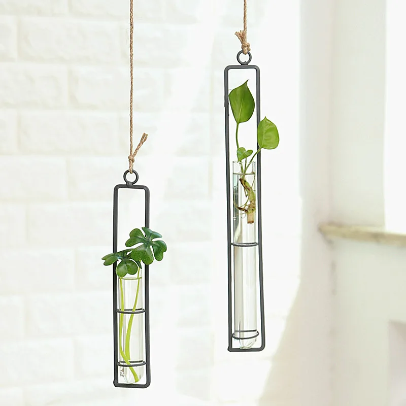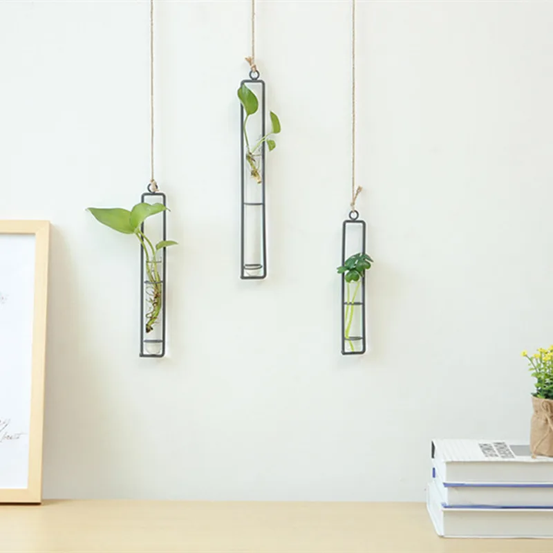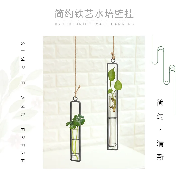 Kreatywna ściana wiszący kwiat wazon żelaza szkło hydroponika doniczka przezroczyste wiszące wiszący kwiat wazon na kwiaty ozdoba domu dekoracji