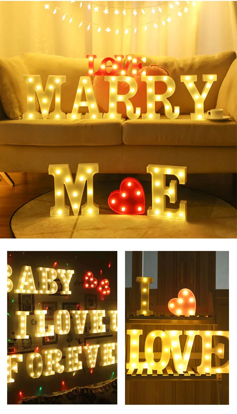 16/21CM światła LED w kształcie liter serca listu Symbol znak noc światło na boże narodzenie walentynki wesele biurko dekoracji wnętrz