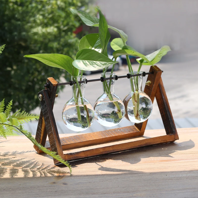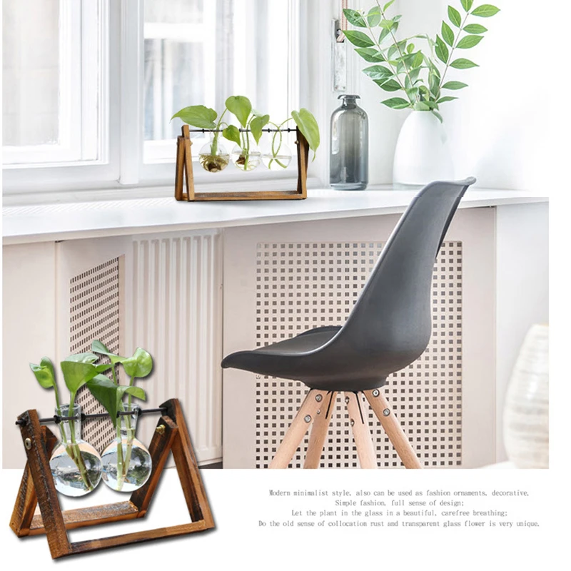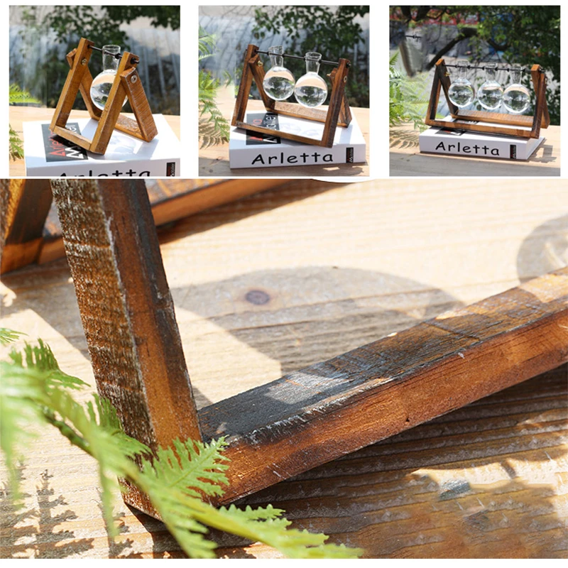 ?Materiał: retro drewniany stojak szklany kwiat wazon do garnka wykonany jest z naturalnego drewna; Mała żarówka kształt wazon wykonany jest z góry szkło borokrzemianowe o pięknym wyglądzie.
