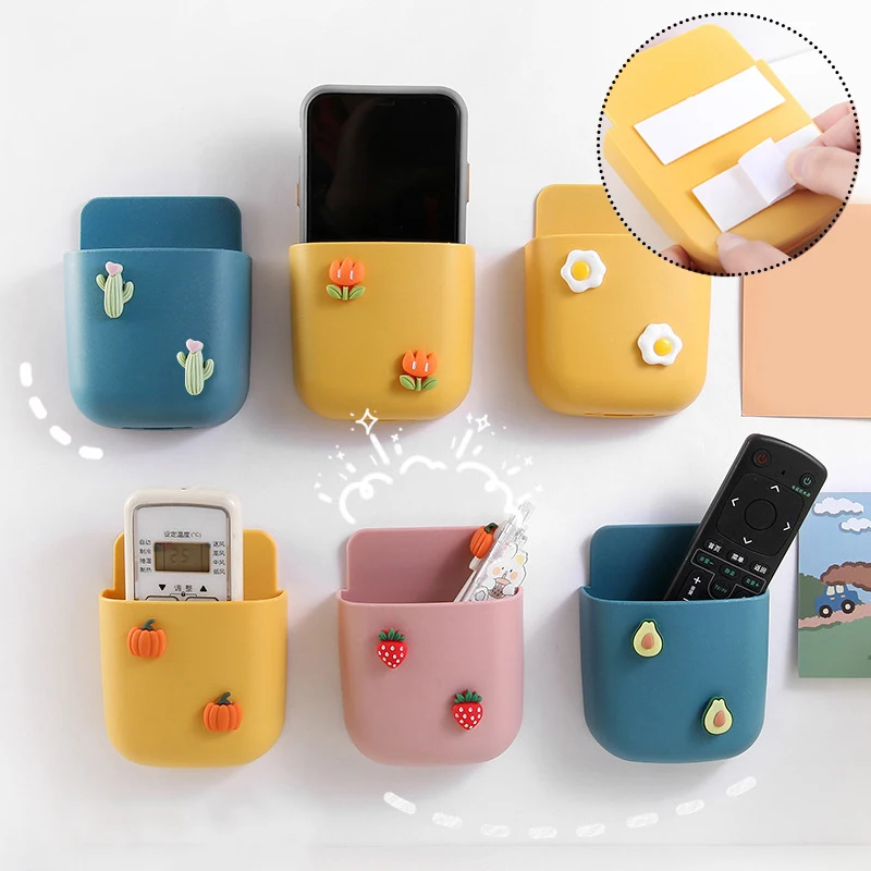 Kreskówka ścienna montowany pojemnik do przechowywania zdalnego sterowania Storage Organizer Case do klimatyzatora TV telefon uchwyt wtyczki wieszak stojący 2021