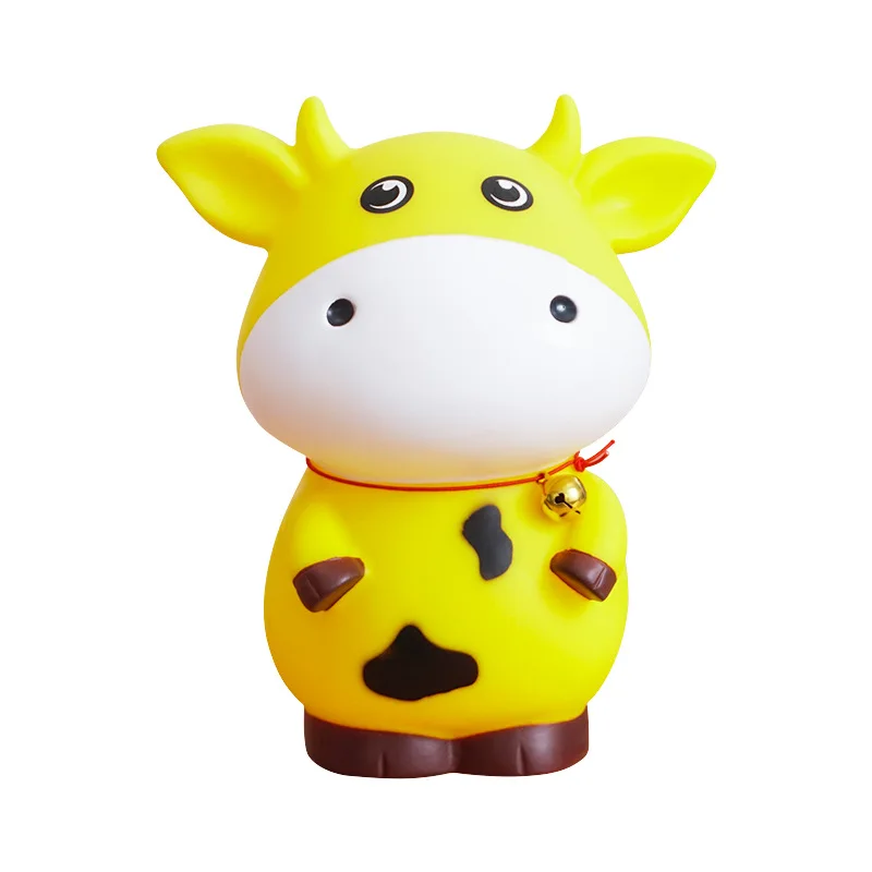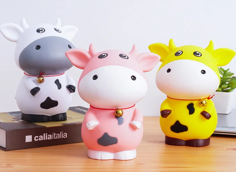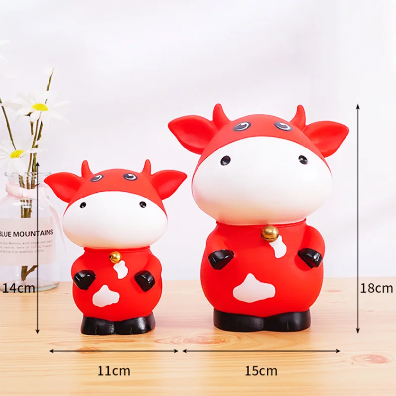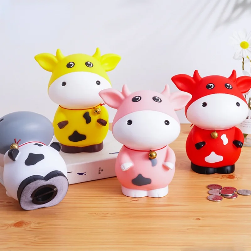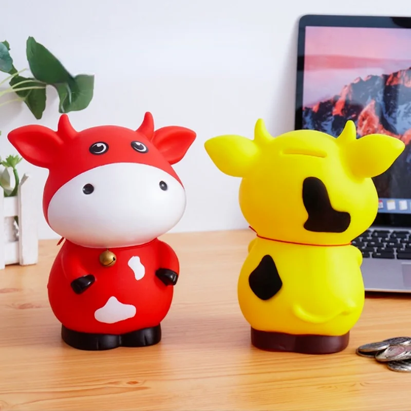 Kreskówkowa krowa skarbonka wół rok maskotka skarbonka przedszkole prezenty winylowe zabawki dla dzieci skarbonki śliczne skarbonka z tworzywa sztucznego