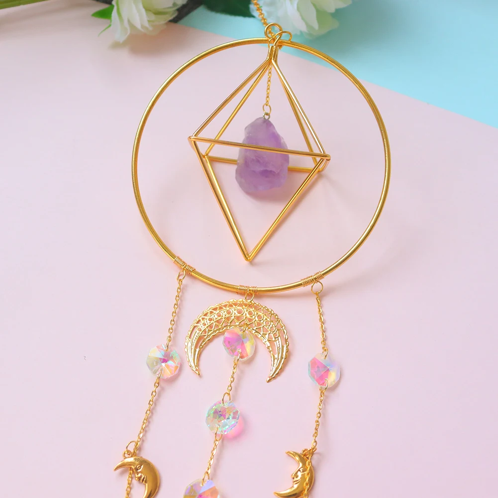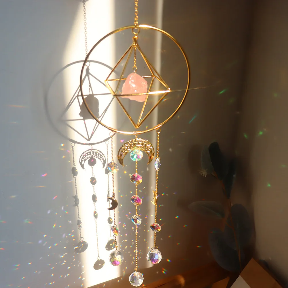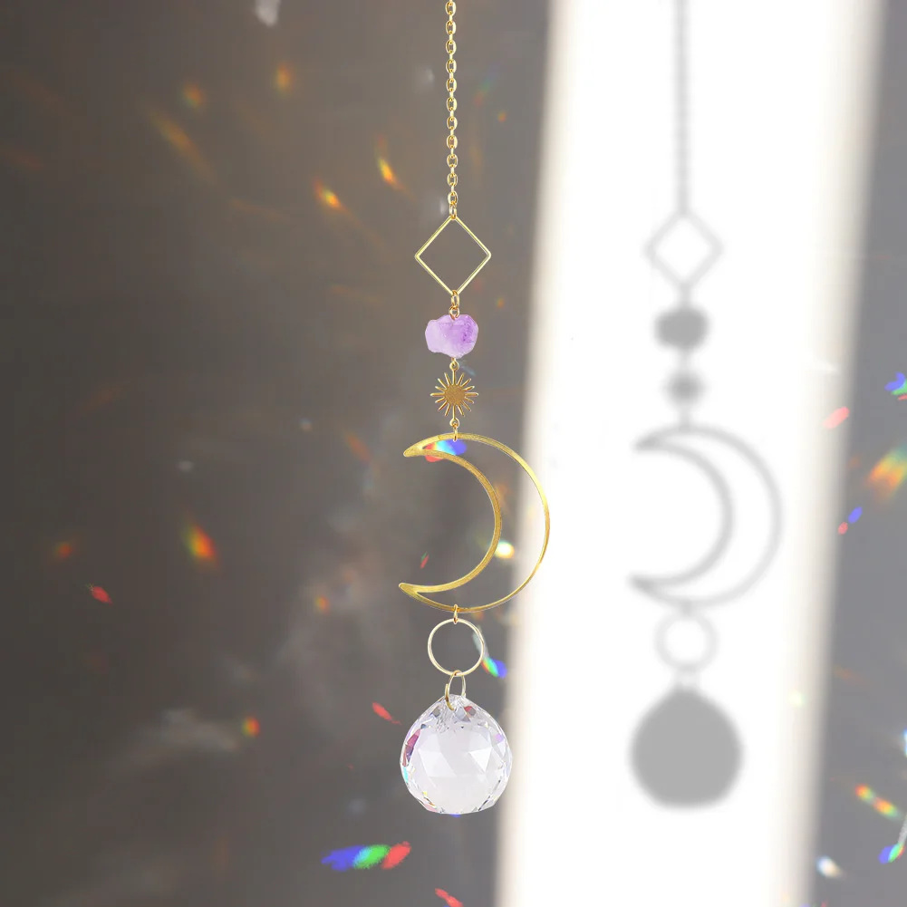 Kryształowy dzwonek wietrzny gwiazda księżyc słońce łapacze Windchimes Plated kolorowe koraliki wiszące spadek na zewnątrz kryty ogród wystrój rzemioślniczy