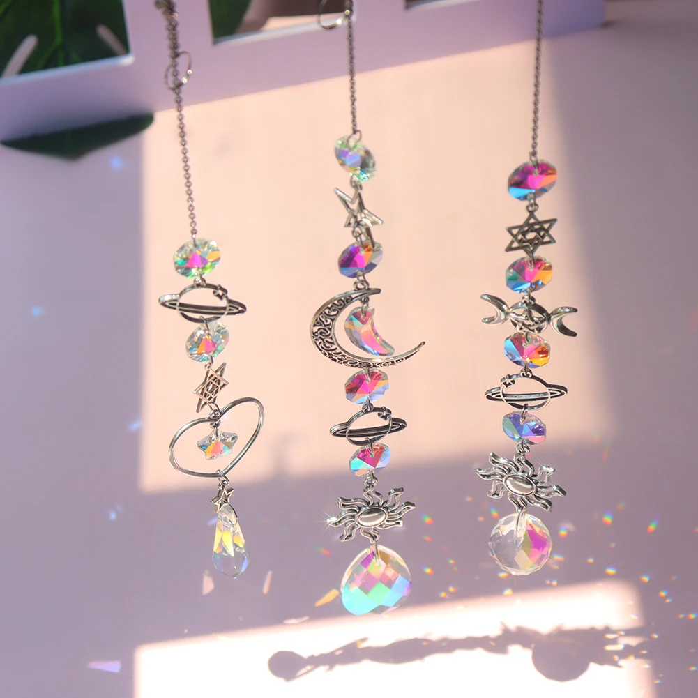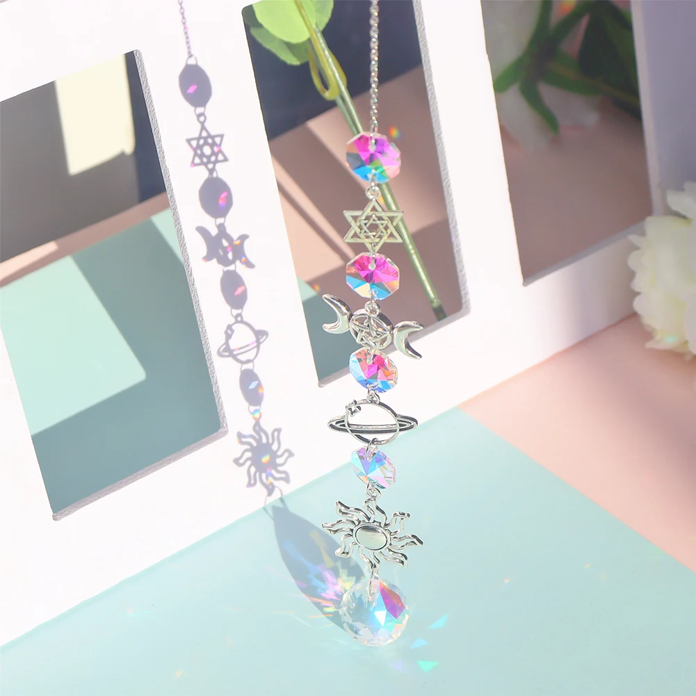 Kryształowy dzwonek wietrzny księżyc słońce łapacz diamentowe pryzmaty wisiorek łapacz snów Rainbow Chaser wiszące spadek wystrój ogrodu domu Windchime