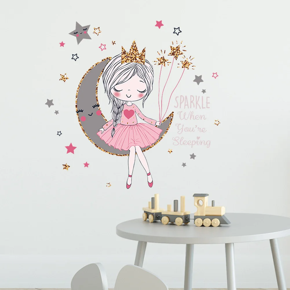 Kreskówki księżniczka na księżycu naklejka ścienna