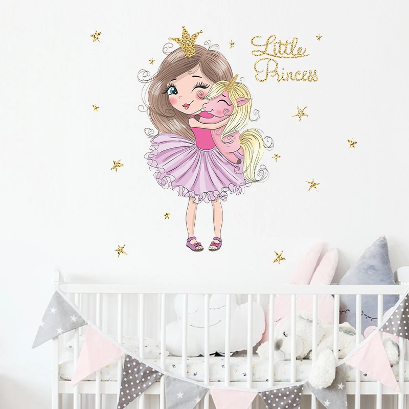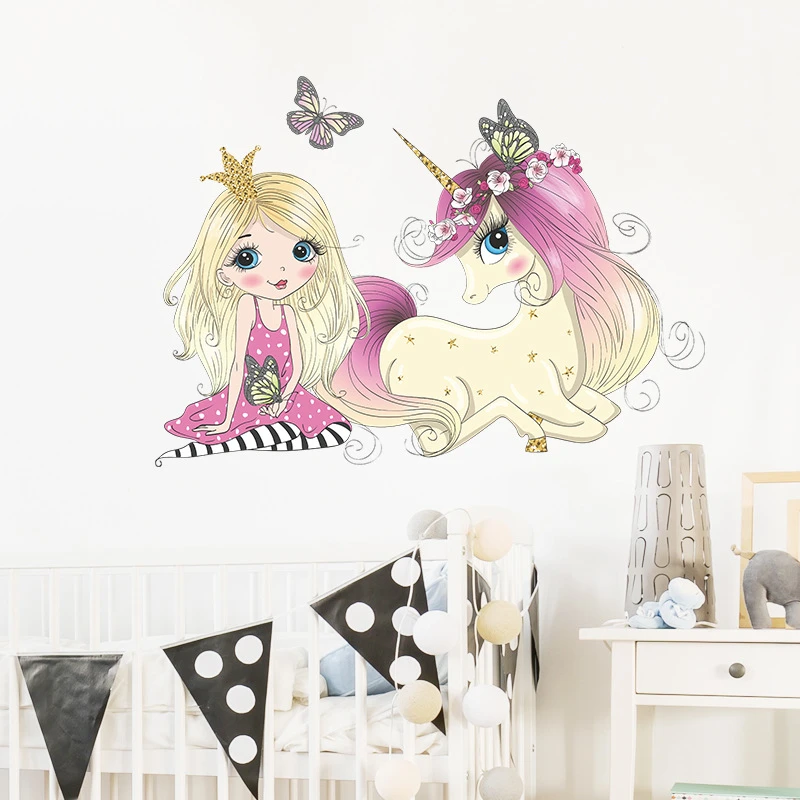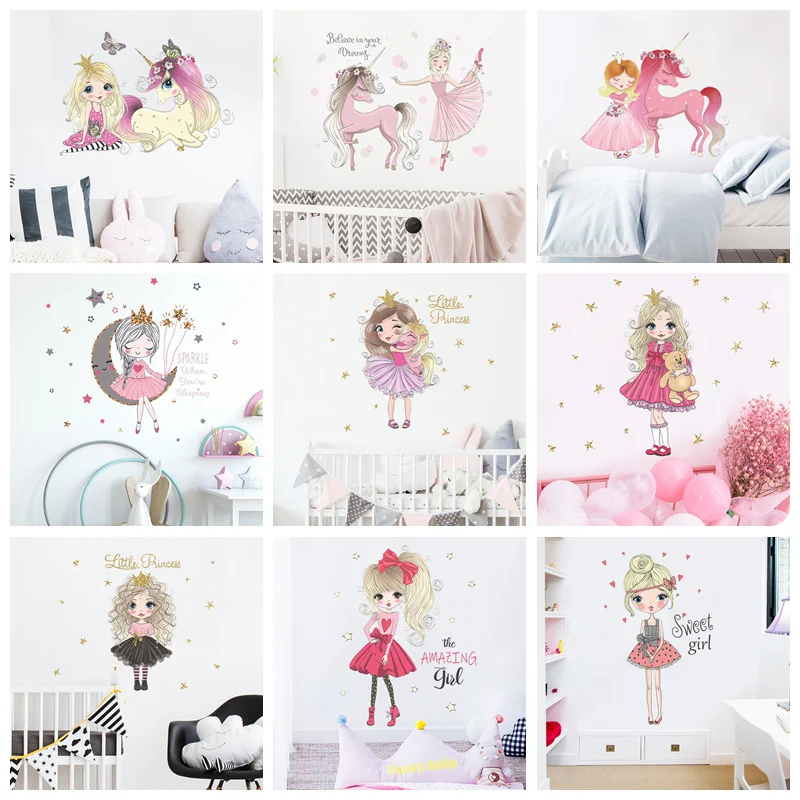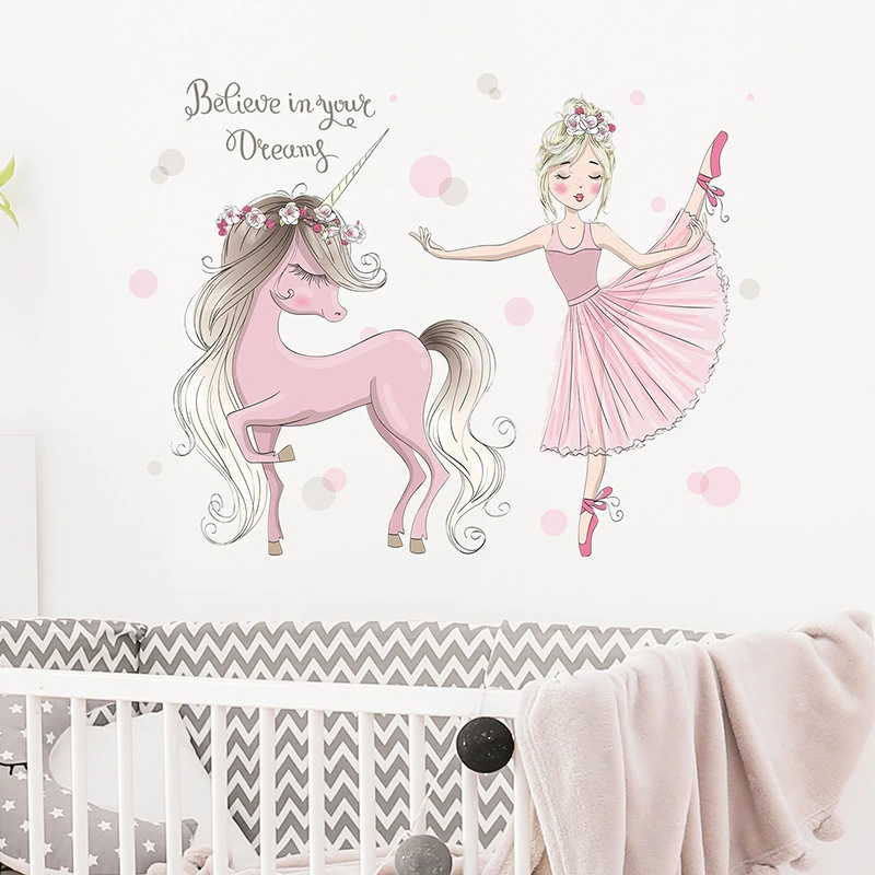 Księżniczka naklejki ścienne Cartoon jednorożec naklejki winylowe dekoracyjne dekoracje ścienne plakat dla dzieci dziewczyna pokoje baletnica naklejka ścienna