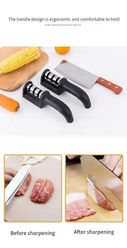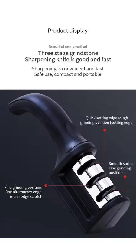 Kuchnia 3-Segment nóż gospodarstwa domowego temperówka wielofunkcyjny ręczny-odbyły się trzy-przeznaczenia czarny kamień do ostrzenia