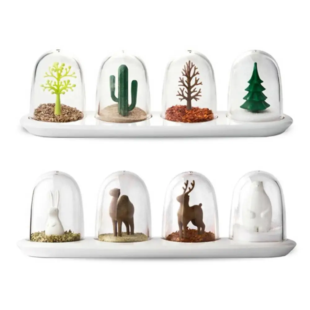 Każda butelka na przyprawy charakteryzuje się różnymi drzewami sezonowymi dla różnych rodzajów przypraw.