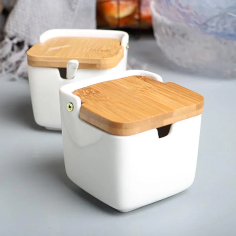 Strona główna » Sklep » Kuchnia specjalny ceramiczny dozownik do sosów, narzędzia przyprawowe, porcelanowe pudełko i bambusowa pokrywka pojemnik do przechowywania, wygodny i trwały