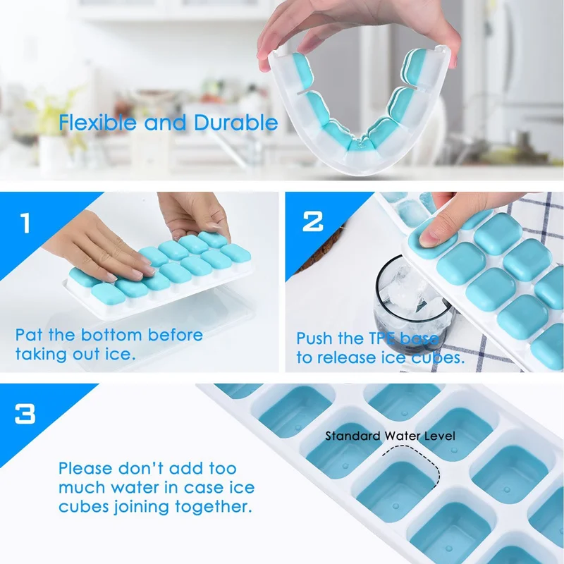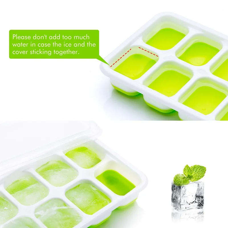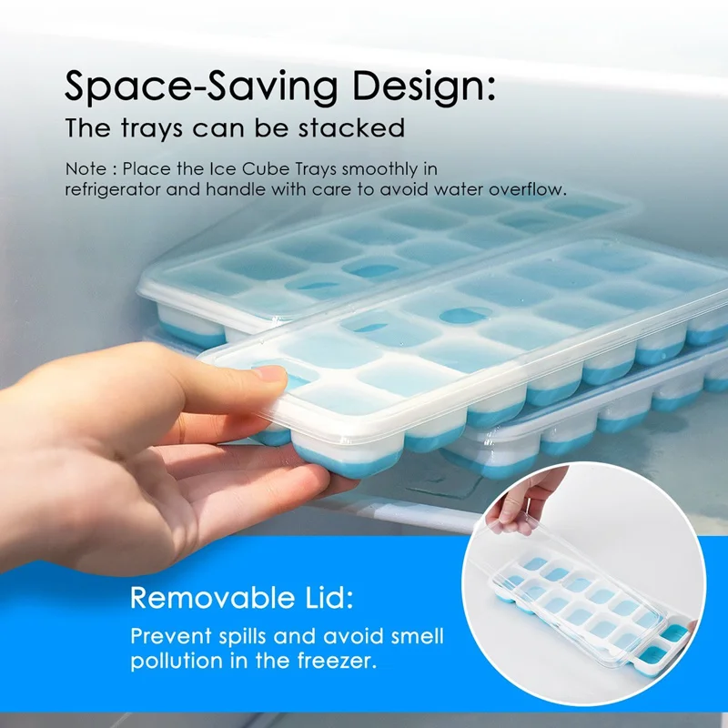 Łatwe w uwalnianiu silikonowe i elastyczne 14-formy do lodów z odpornym na zalanie zdejmowanym wieczkiem tacki na kostki lodu 1 sztuka