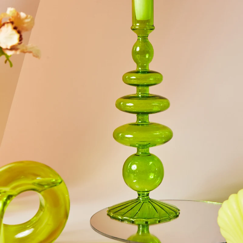 Lazzy House świeczniki dekoracje ślubne skandynawski zielony szklany świecznik Home Decor wazony świąteczny prezent świece domowe