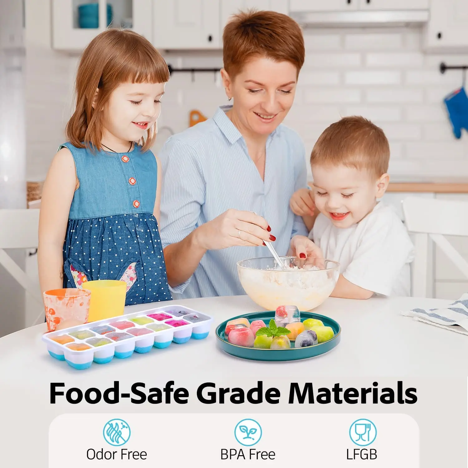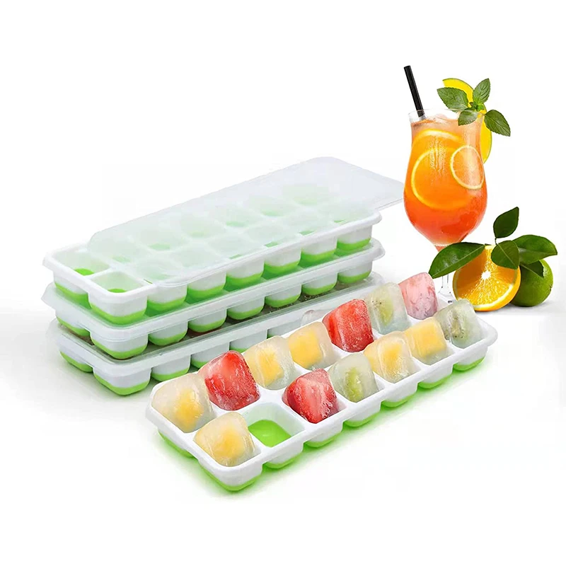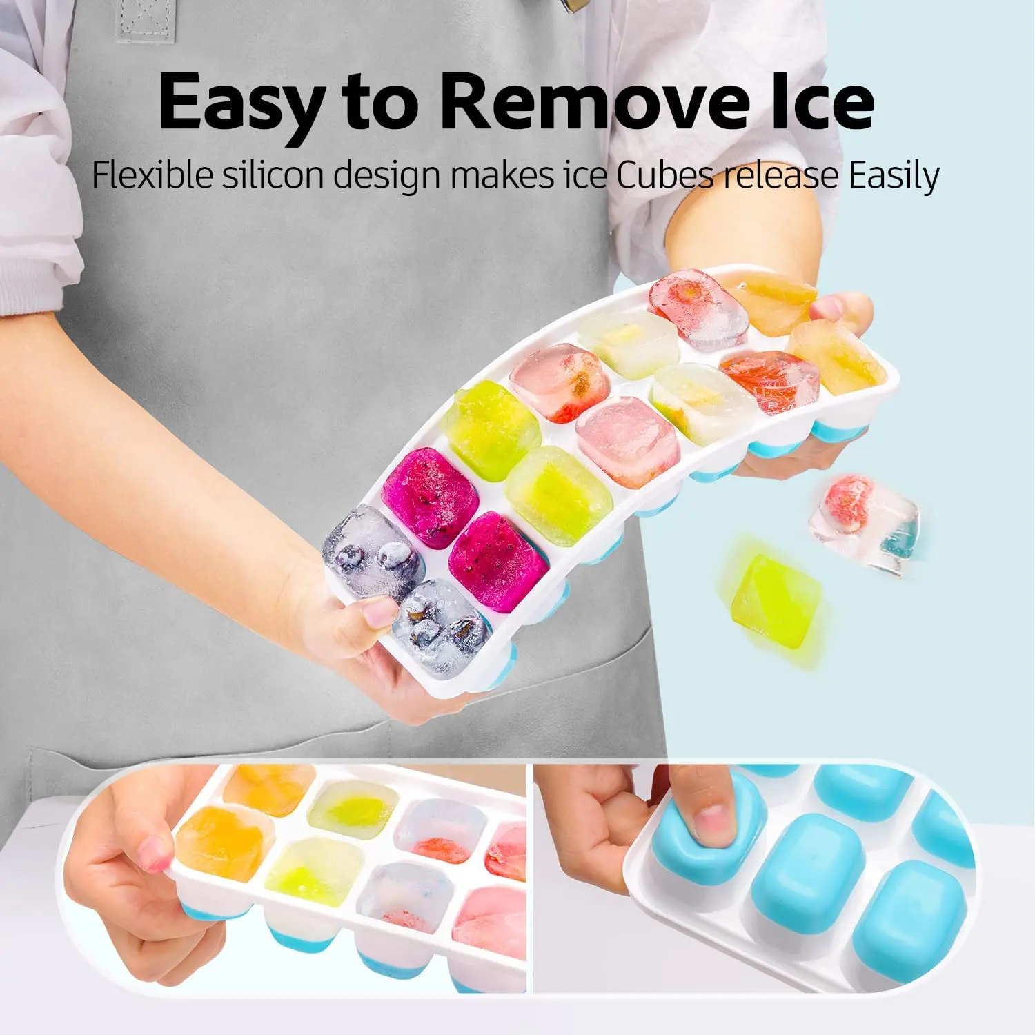 lce Cube Trays Silicone Ice Cube Tray with Removable Lid Easy-Release Flexible Durable Ice Cube Molds for Freezer Drink Cocktail