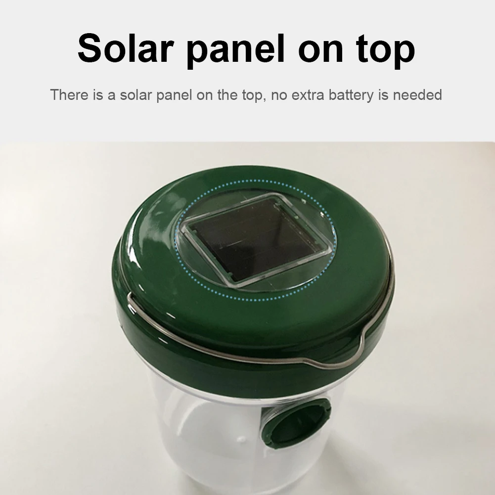 Funkcje: * 1. Skuteczna pułapka na osy: z podwójnymi tunelami wejściowymi na pułapce, która może zwiększyć ryzyko złapania owadów. * 2. Słoneczne światło ultrafioletowe: zaprojektowany z panelem słonecznym i baterią zasilaną energią słoneczną, ładuje się w ciągu dnia i pracuje w nocy. Światło ultrafioletowe generuje ciepły blask, aby zwabić owady