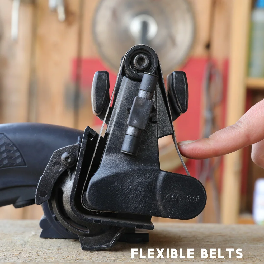 Dostosuj kąt pokrętła (15 ° -30 °), zainstaluj odpowiedni pas ścierny, ogólnie w kolejności grubej i cienkiej, użyj grubego pasek papieru ściernego do polerowania zadziorów, a następnie polski z drobnym pas ścierny, aby go sharp. Po wybraniu odpowiedniego pasa, włóż nóż do rowka w kształcie litery V lewego i prawego prowadnicy, pociągnij wzdłuż krzywej ostrza, I pociągnij zewnętrzną krawędź prowadnicy od korzenia do czubka prowadnicy (używaj tylko siły noża, nie przymocowanego lub przymocowanego) mocniejszego).