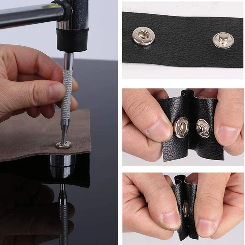 LMDZ 85 sztuk skóra zatrzaski montażowe zestaw zatrzask metalowy przycisk zatrzaski z młotek narzędzia instalacyjne dla DIY skóra Craft projektu