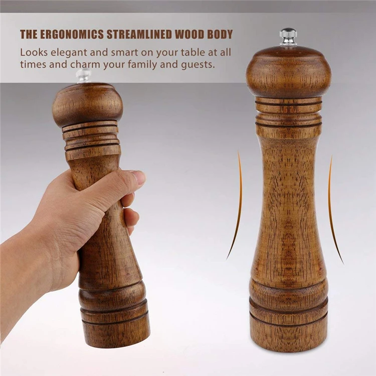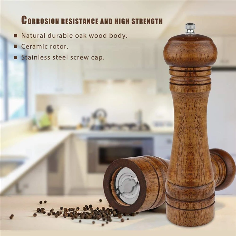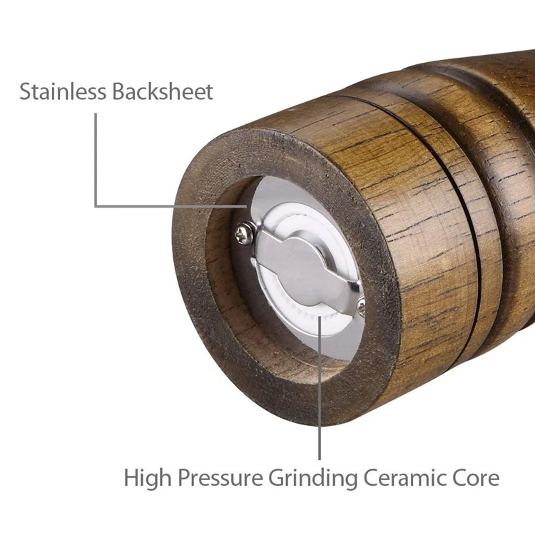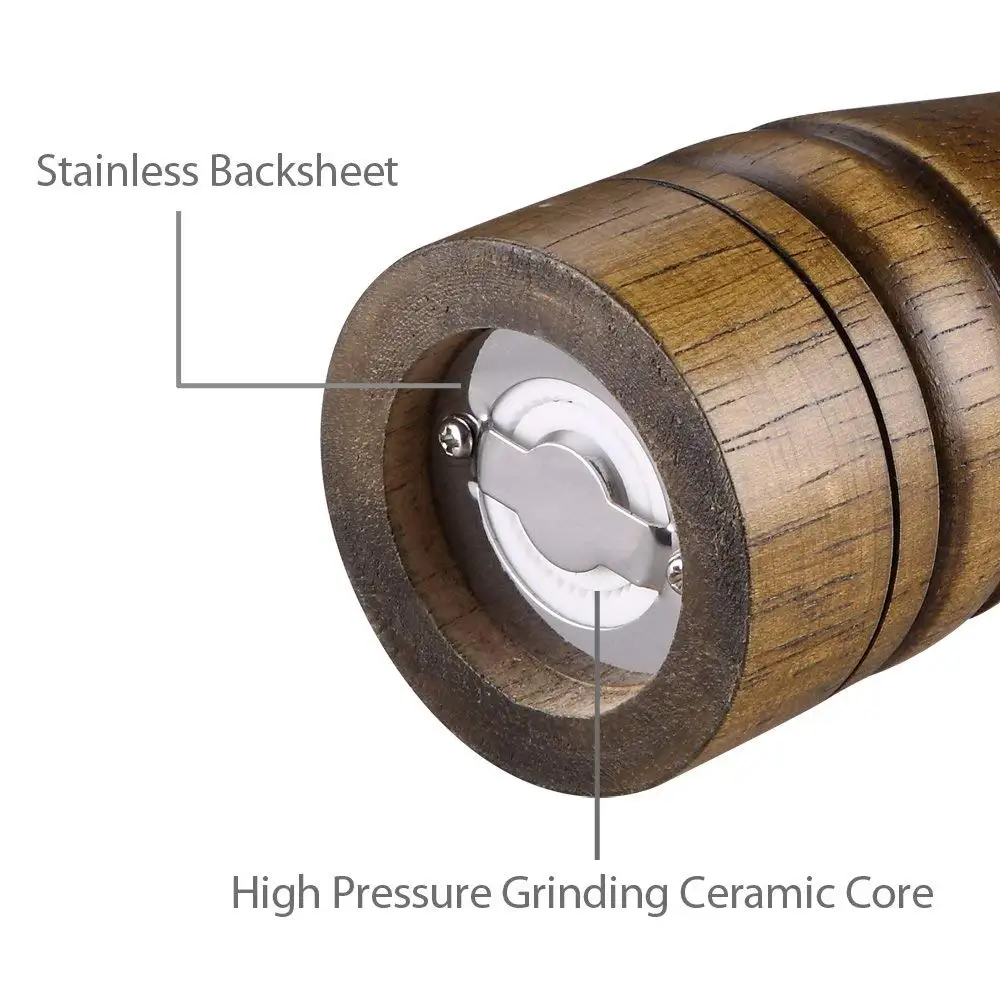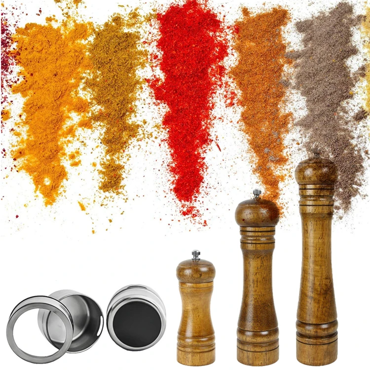 LMETJMA młynek do soli i pieprzu z drewna i magnetyczne słoiczki na przyprawy zestaw szlifierki do pieprzu solniczki z regulowanym ceramicznym wirnikiem KC0215