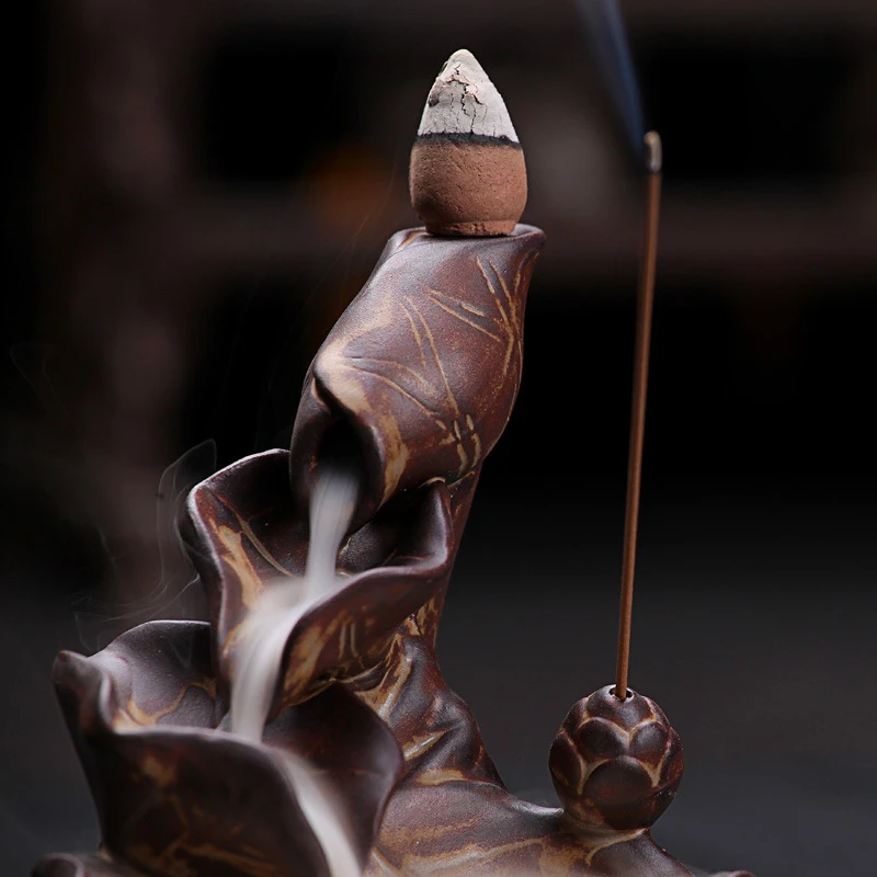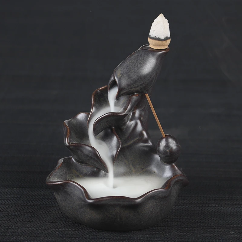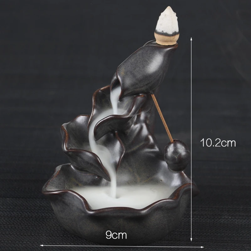 Lotos fontanna uchwyt kadzidła palnika wodospad Backflow Home Decor buddyjski aromat kadzielnica na herbaciarnia z 20 kadzidełkami