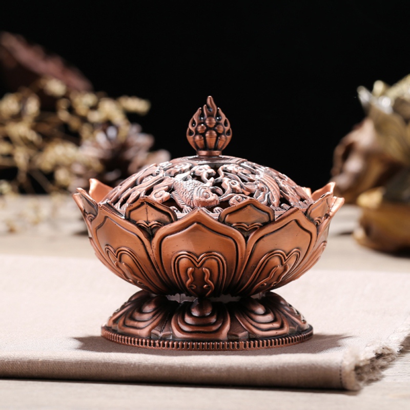 Palnik kadzidełkowy ze stopu cynku i miedzi w kształcie lotosu, kompaktowy i łatwy w użyciu.