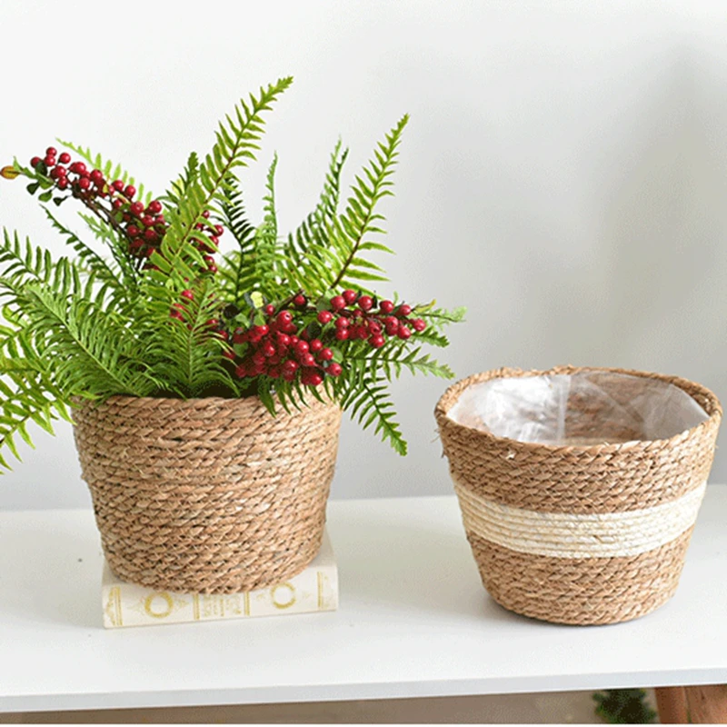 LuanQI wodorosty kosz z rączką ręcznie robiony składany roślin doniczka wiklina ubrania pojemnik na zabawki uchwyt organizator kosz rattanowy❤Ente