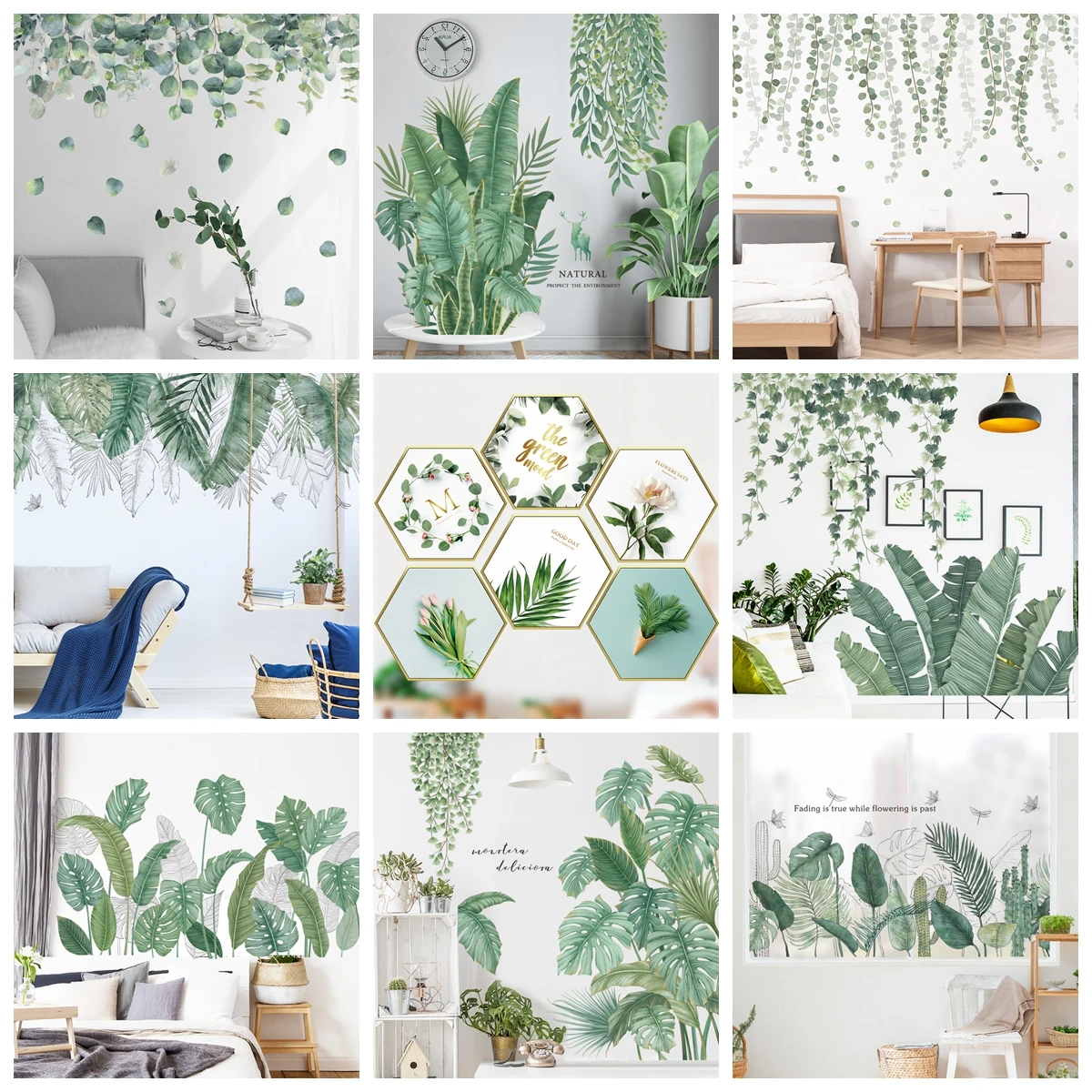 LuanQI zielone liście naklejki ścienne do domu salon dekoracyjna winylowa naklejka na ścianę tropikalne rośliny DIY Kid drzwi malowidła tapety