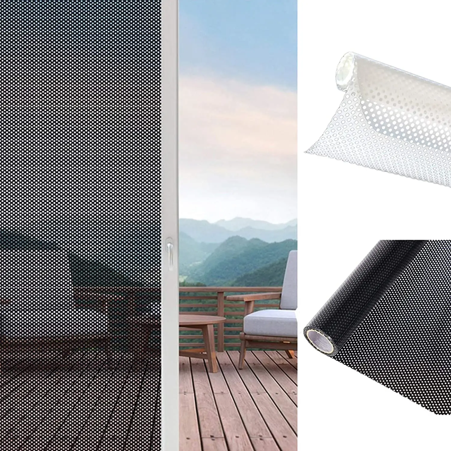 Luckyj samoprzylepna folia okienna z siatki, naklejka na szyba okienna do pokoju prywatności, anty-uv kropkowane okno przylegające do domowego biura