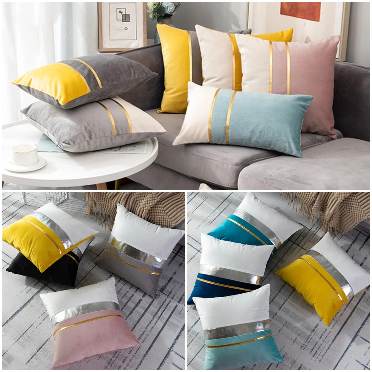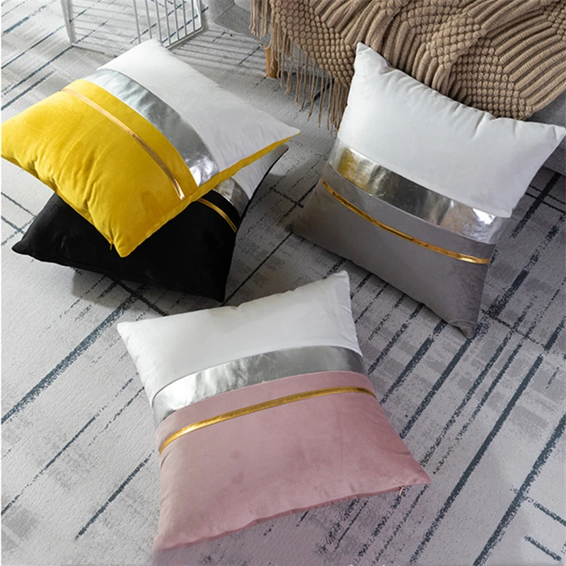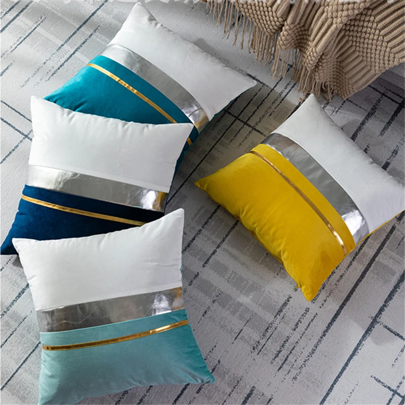 Luksusowa Sofa aksamitna, patchworkowa złota nitka solidna poduszka Case 30X50CM