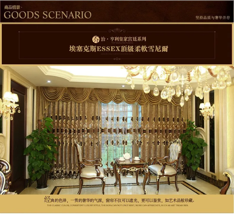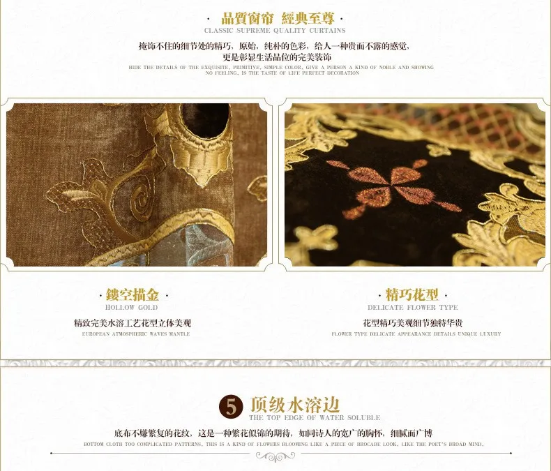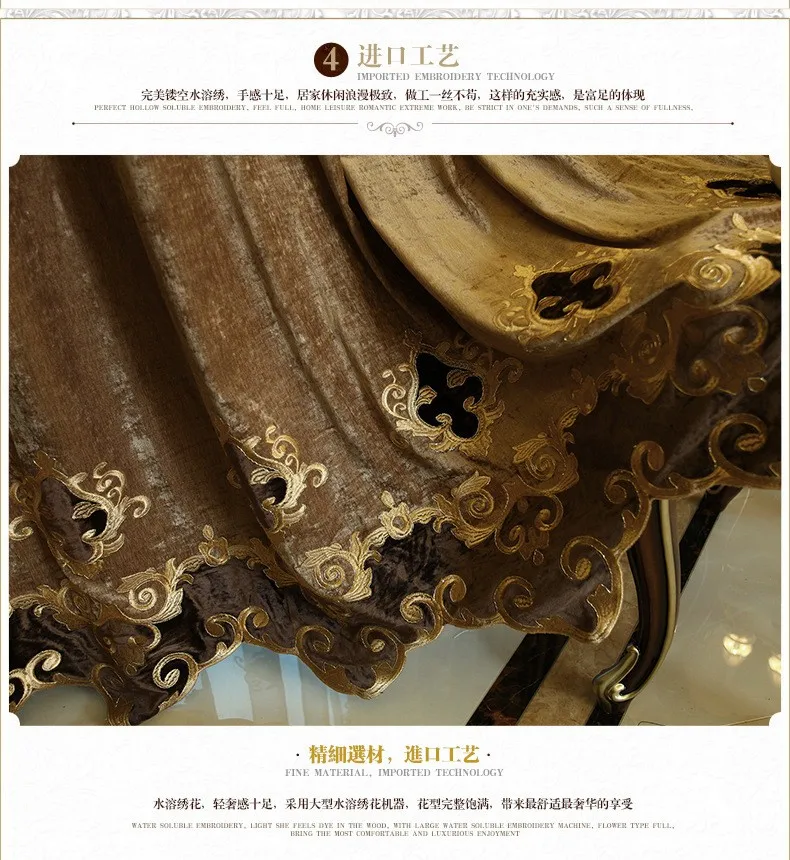 Europejskie luksusowe brązowe haftowane zasłony do salonuZasłony doSypialnia kuchnia złota z Sheer odpowiednie okna tło Valance dzienne zasłony do salonu
