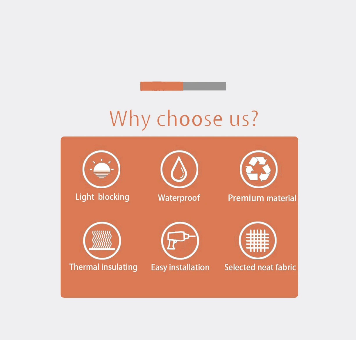 Funkcja:Wodoodporny, łatwy w pielęgnacji, pyłoszczelny, odporny na blaknięcie, termoizolacyjny, blokujący UV