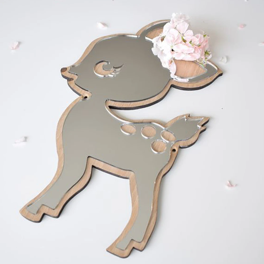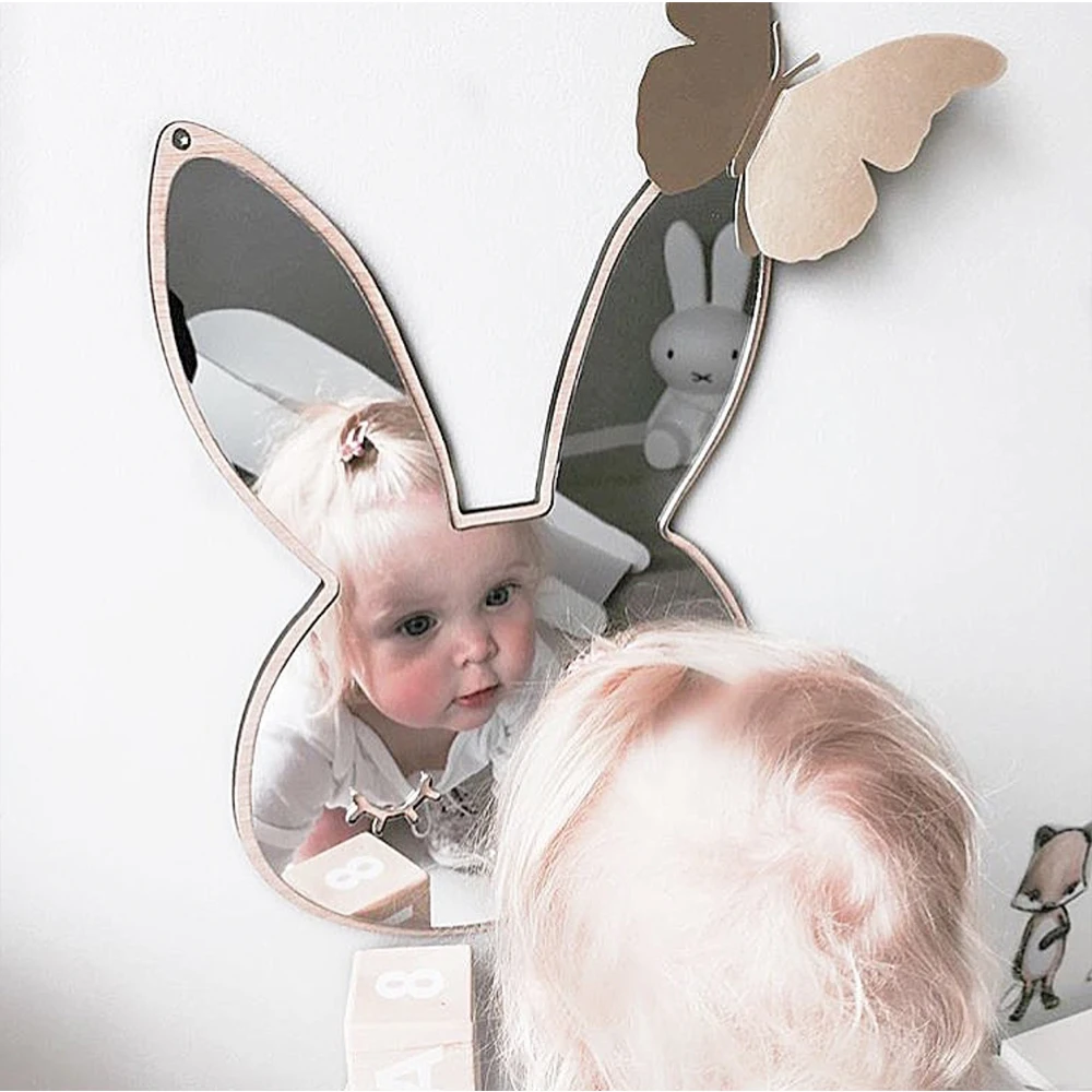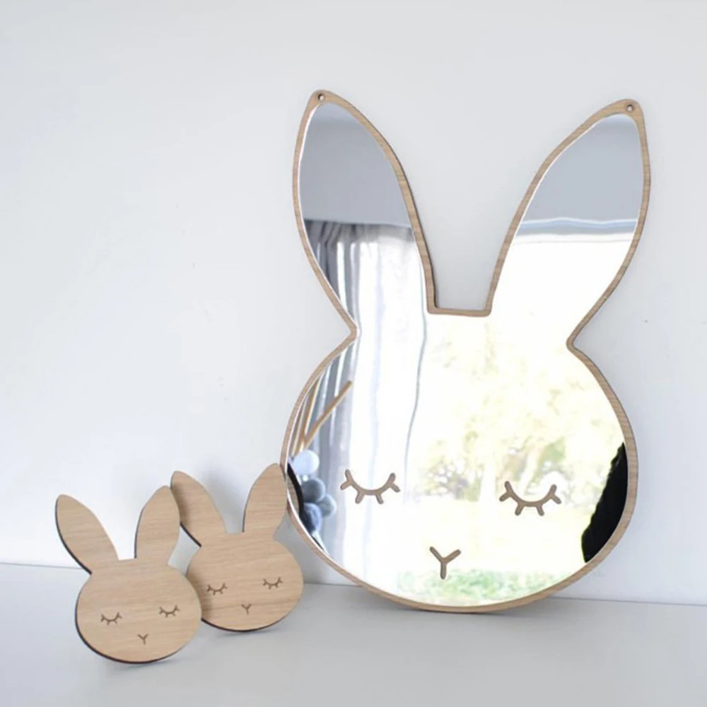 Lustro akrylowe styl skandynawski drewno lustro akrylowe rama lustra śliczny królik kształt kreskówka lustro ozdobne dla dziecka dekoracja do pokoju dziecięcego