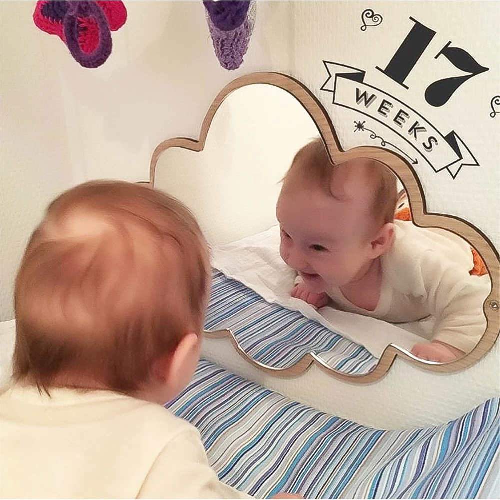 Dzieci Cartoon lustro ozdobne łazienka pokój dziecięcy królik chmura drewno lustro akrylowe rama kreatywne dekoracje na ścianę domu
