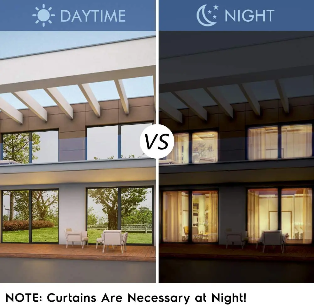 Na zewnątrz szkła pokaże lustrzany efekt w ciągu dnia. A ten lustrzany efekt folii okiennej jest idealny do ochrony prywatności w pomieszczeniach w ciągu dnia.