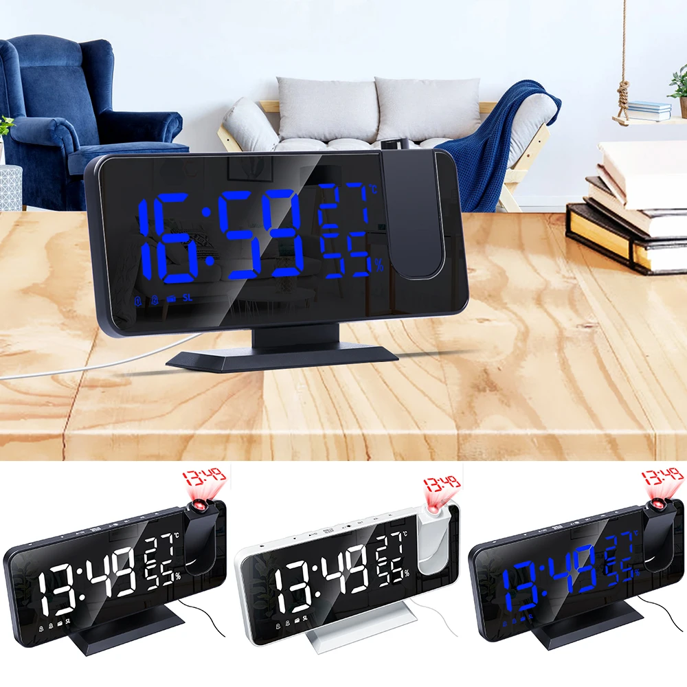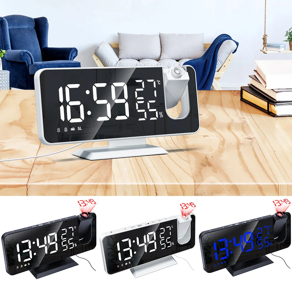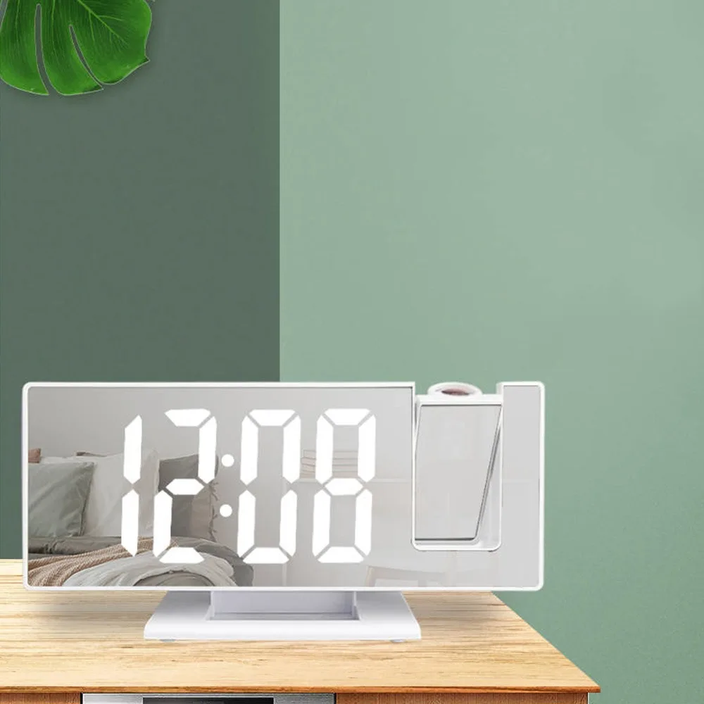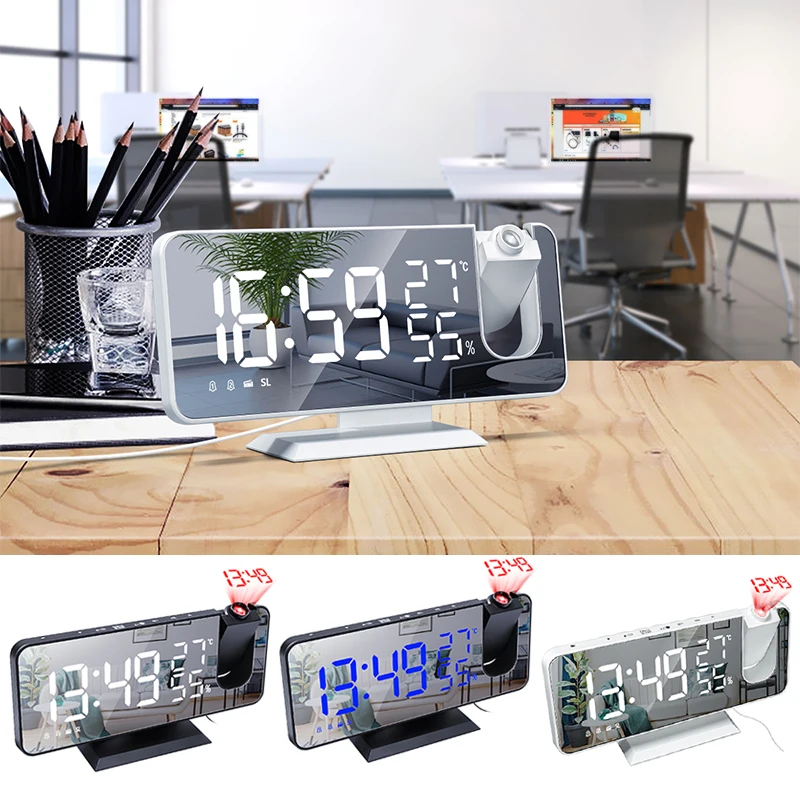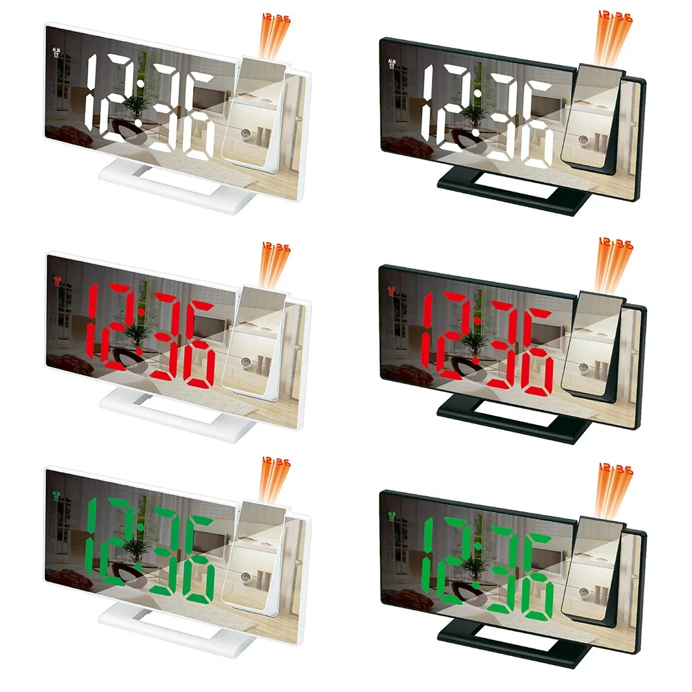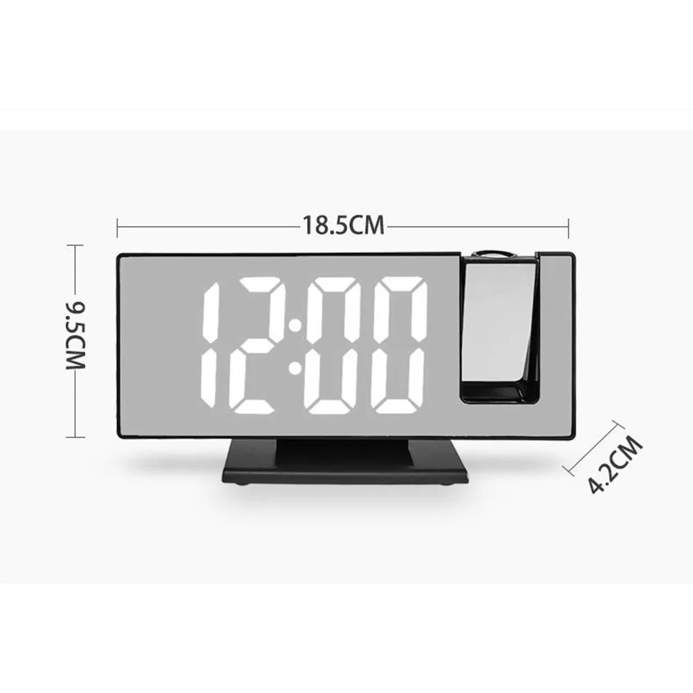 Obrót o 180 °, wygodny do rzucania czasu w dowolne miejsce. alarm z projekcją zegara wyświetla czas na ścianie w miękkim czerwonym świetle, które wyraźnie widać czas, ale nie zakłóci snu. Jasność projekcji na poziomie 2: wysoka jasność-średnia jasność