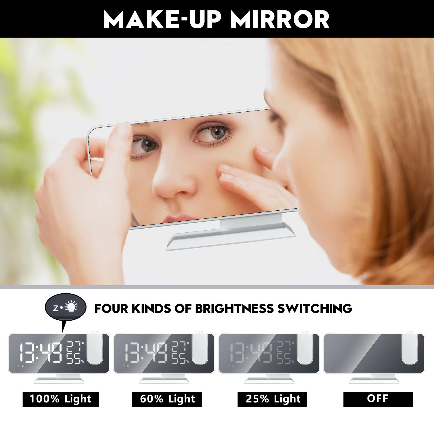 Cyfrowy budzik jest wyposażony w lustrzany wyświetlacz LED, dzięki czemu można wyraźnie zobaczyć czas. W tym samym czasie ten budzik może być używany jako lustro do makijażu, które zapewni ci piękne przez cały dzień. Lustro jest specjalnie traktowane i nie będzie łatwo zarysowane