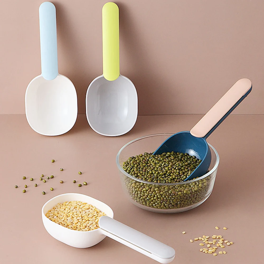 Długa rączka łyżka do mierzenia z klips do torebek uszczelniająca śliczna miarka ryżowa kopanie mąka kopanie ryż pieczenie karmienie zwierząt domowych karma dla kotów