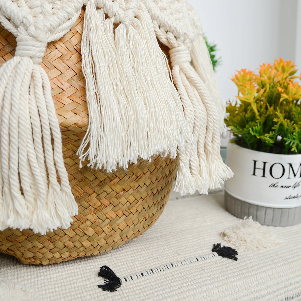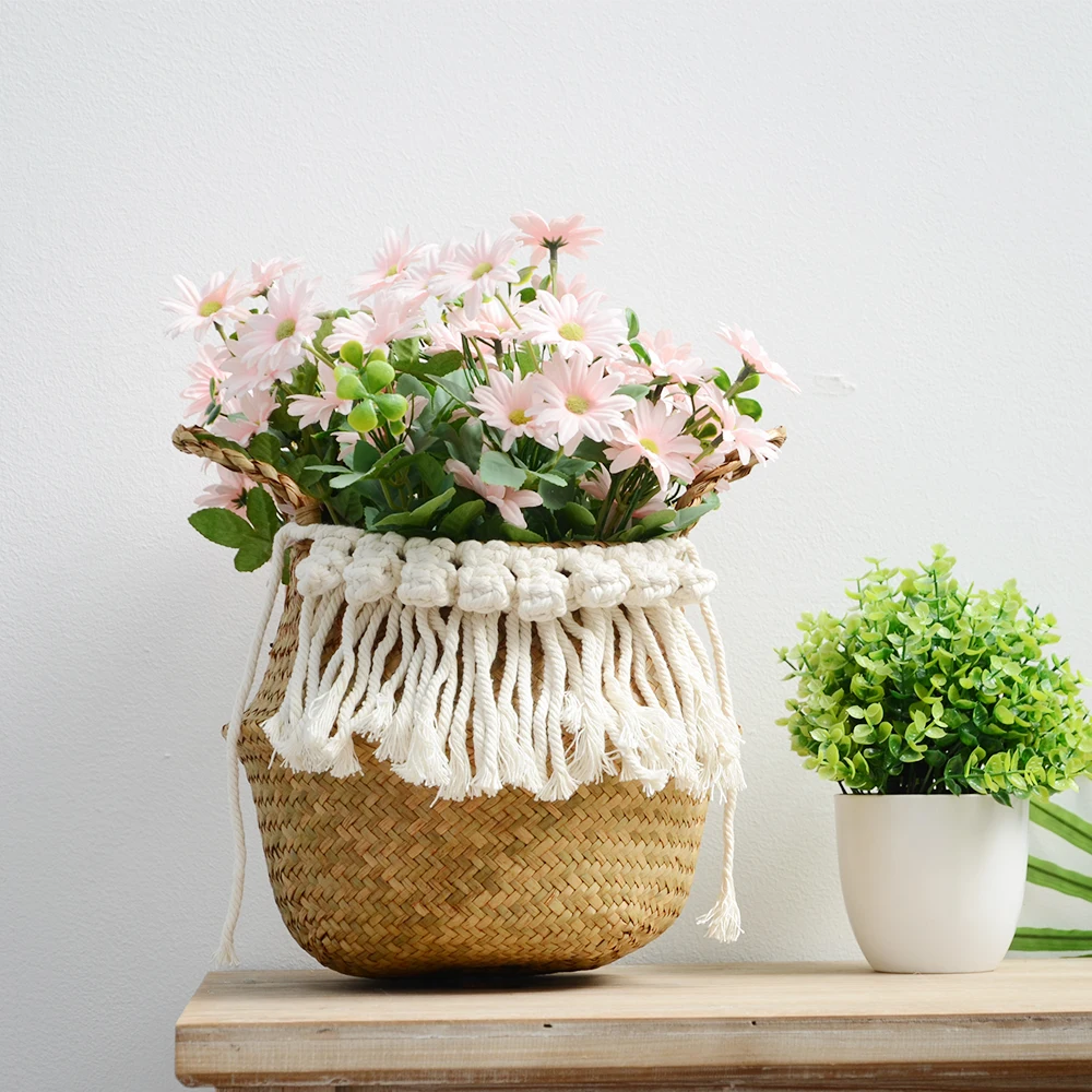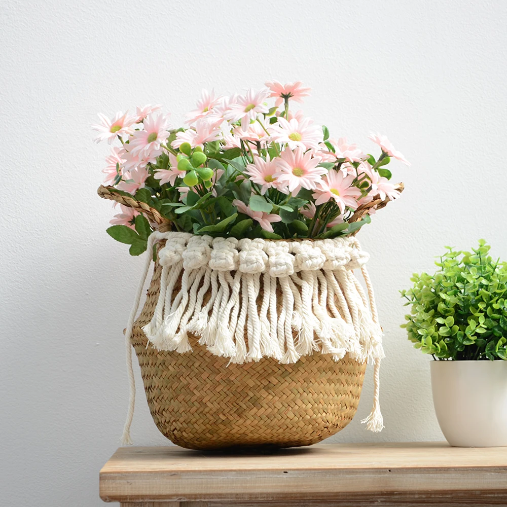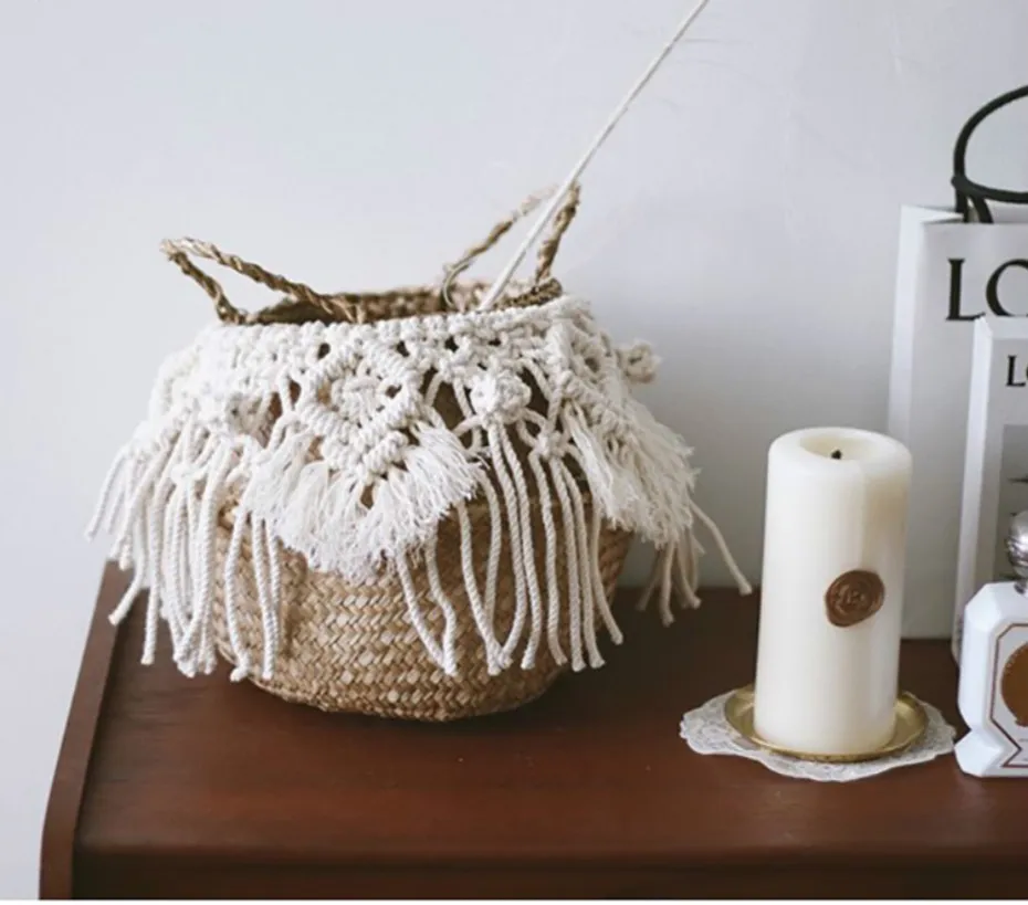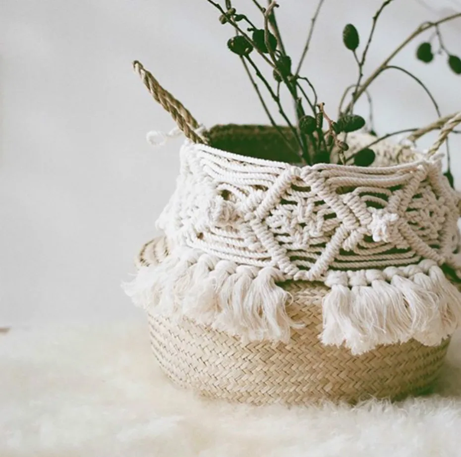 Uwaga: zawieszka z makramy jest przymocowana do uchwytu kosza zamiast być przywiązana wokół kosza.