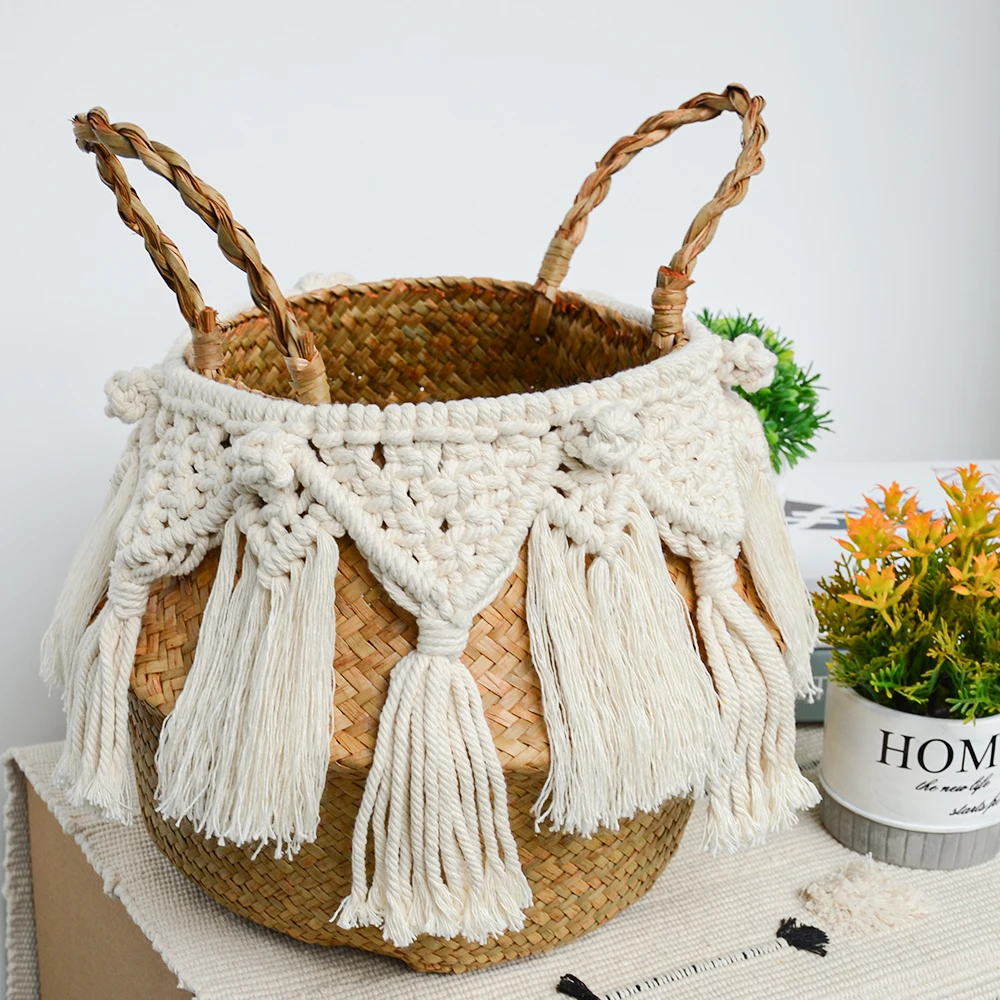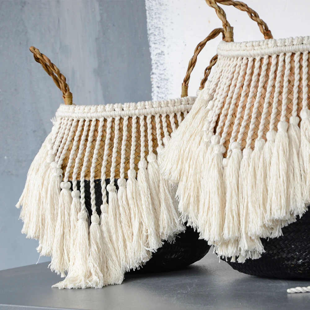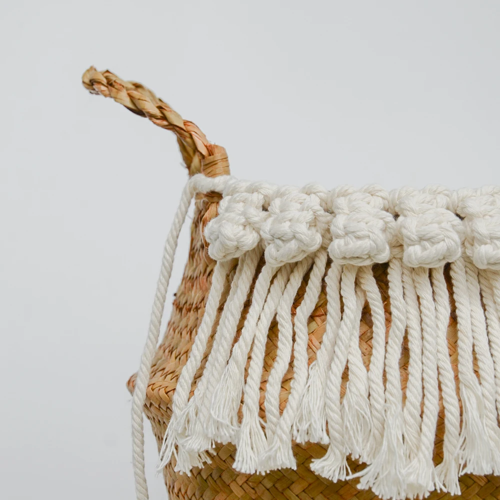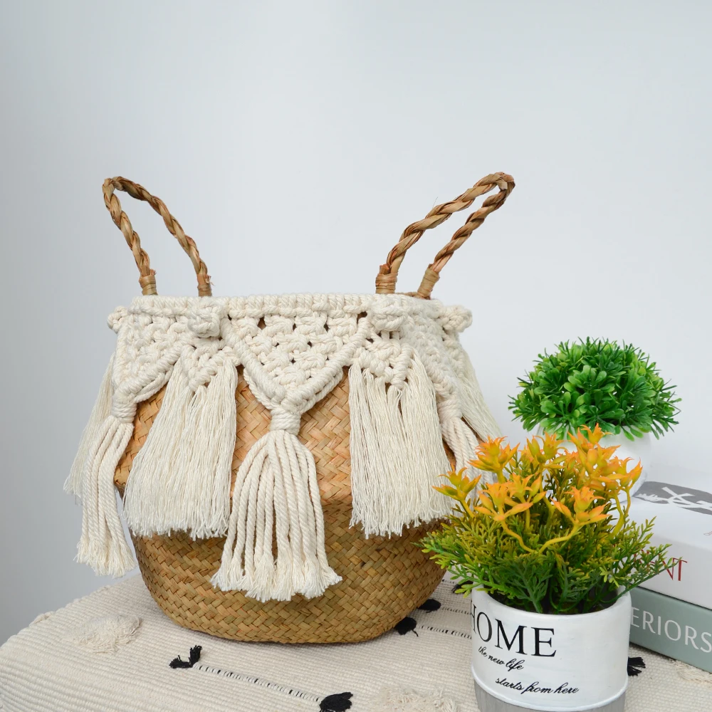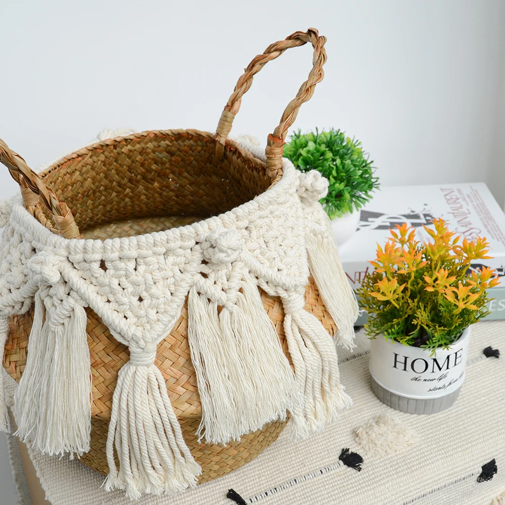 Uwaga: zawieszka z makramy jest przymocowana do uchwytu kosza zamiast być przywiązana wokół kosza.