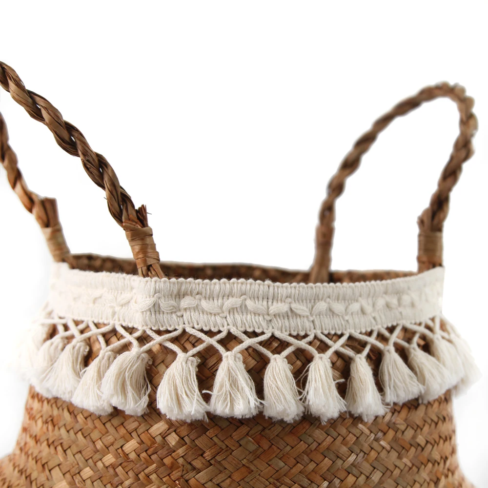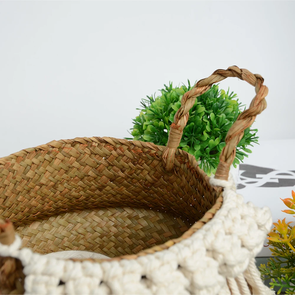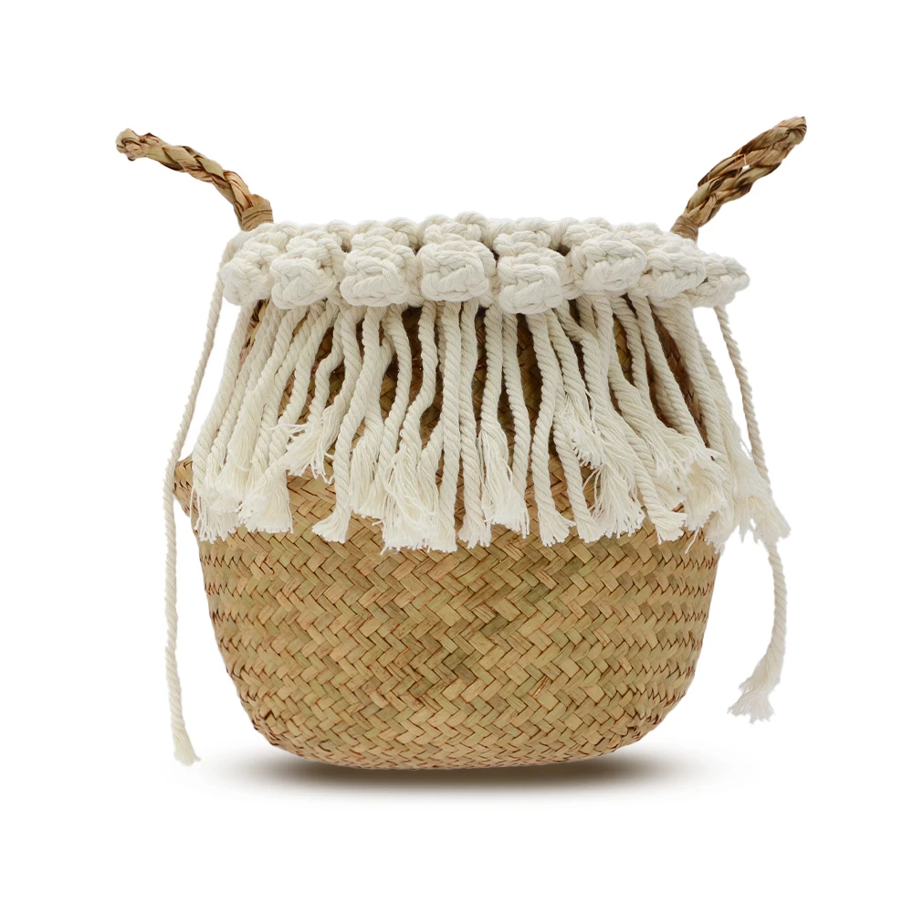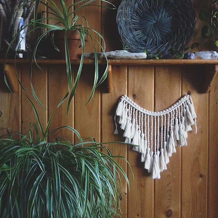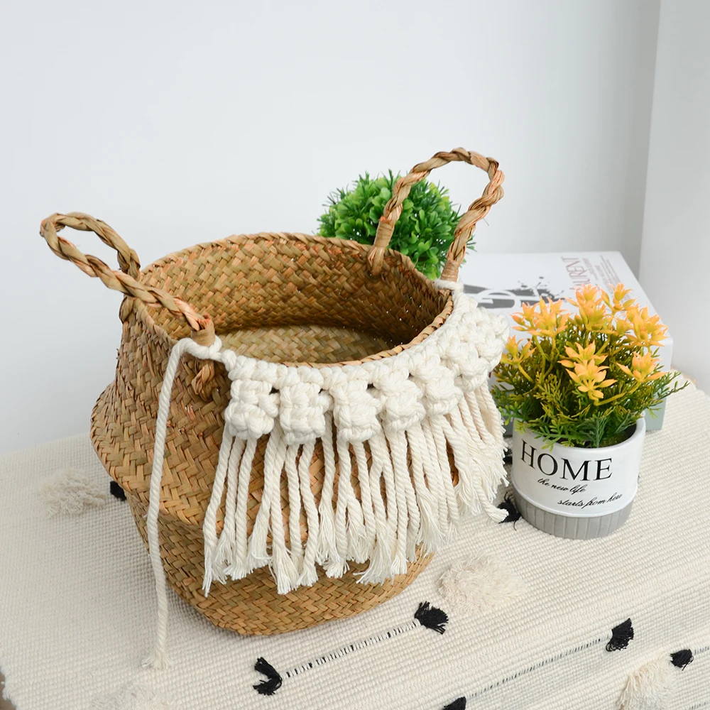 Uwaga: zawieszka z makramy jest przymocowana do uchwytu kosza zamiast być przywiązana wokół kosza.