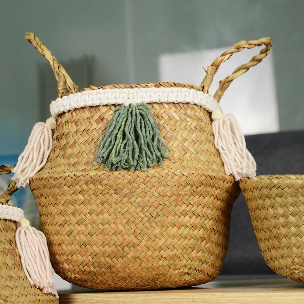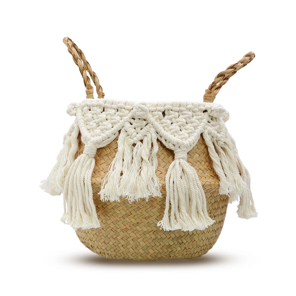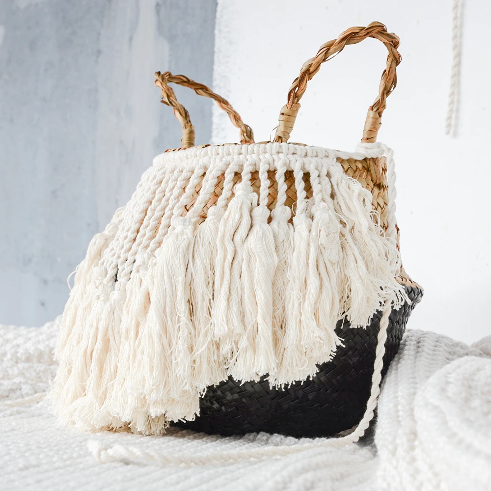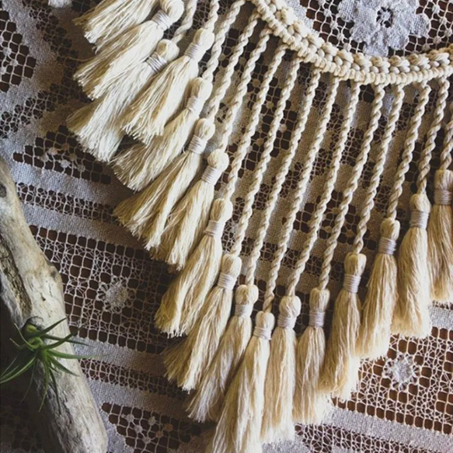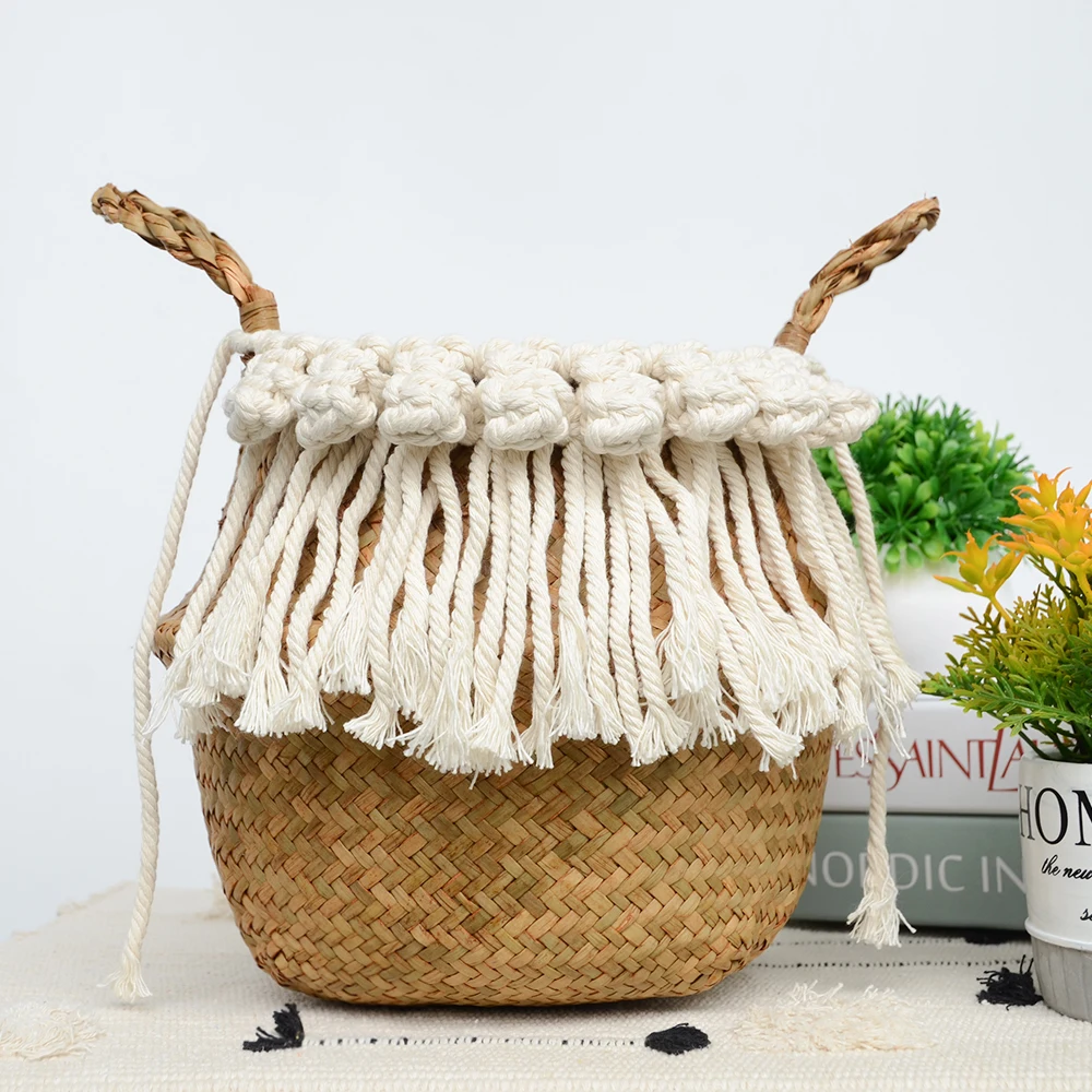 Uwaga: zawieszka z makramy jest przymocowana do uchwytu kosza zamiast być przywiązana wokół kosza.