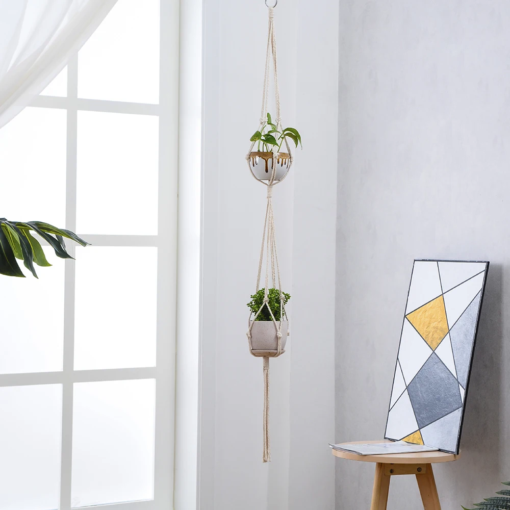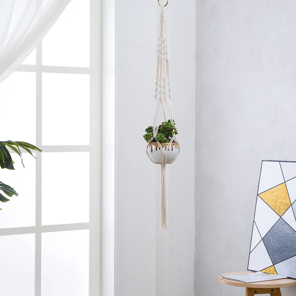 Ta wisząca lina służy do przechowywania doniczek. Może być stosowany wewnątrz lub na zewnątrz, na suficie lub na ścianie.