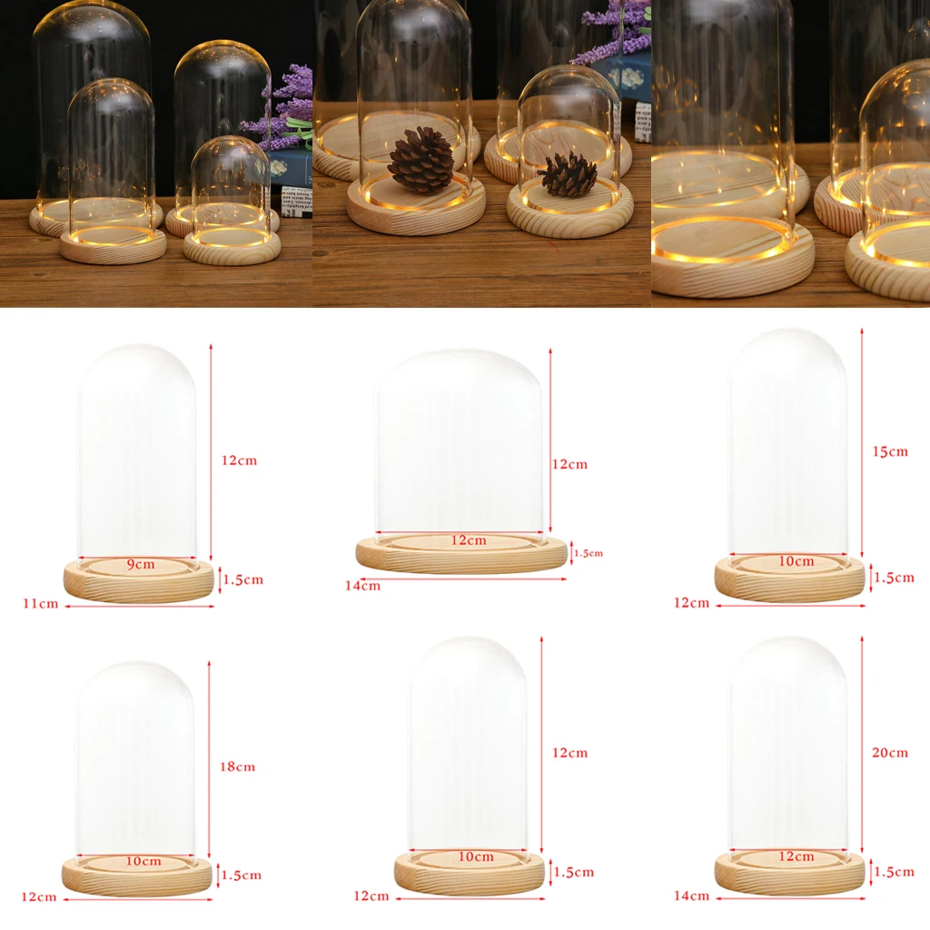 Wysokiej jakości przezroczyste szkło na wyświetlacz kopułowy z drewnianą podstawą LED.
