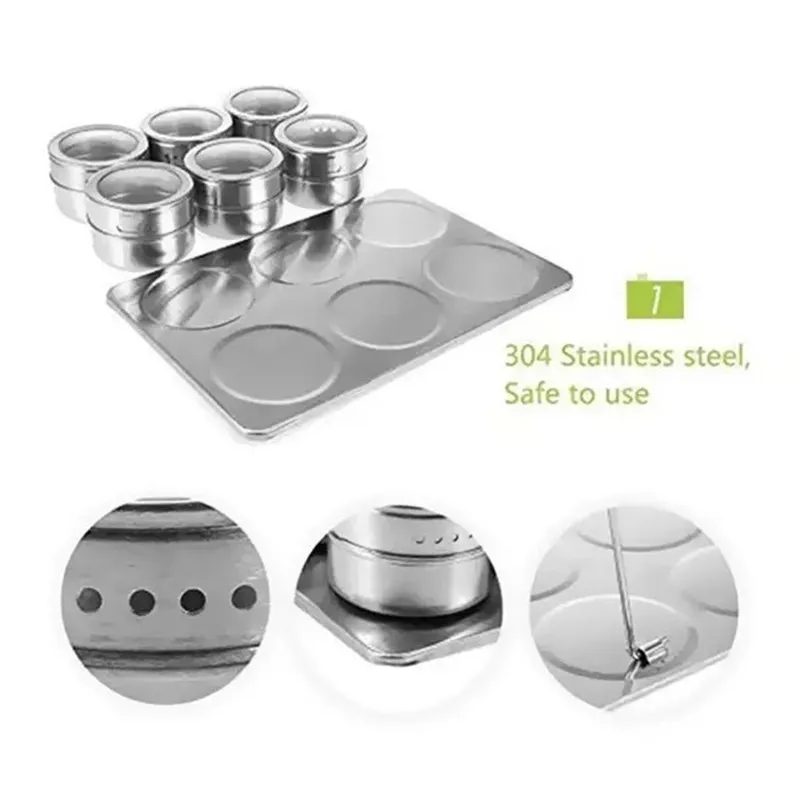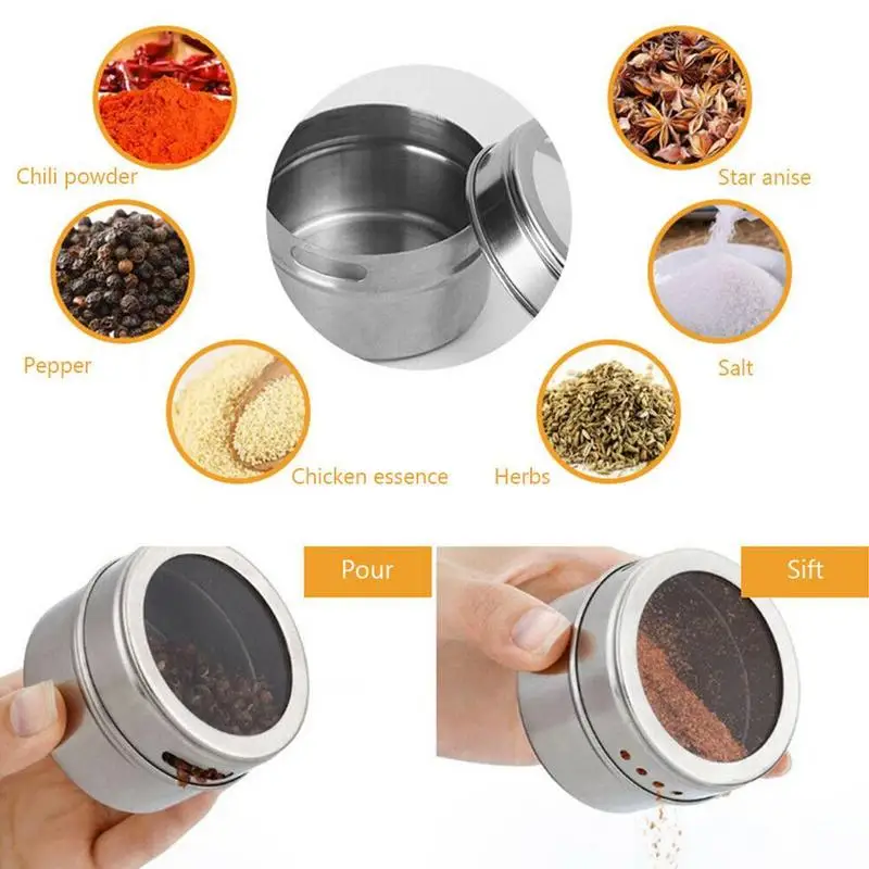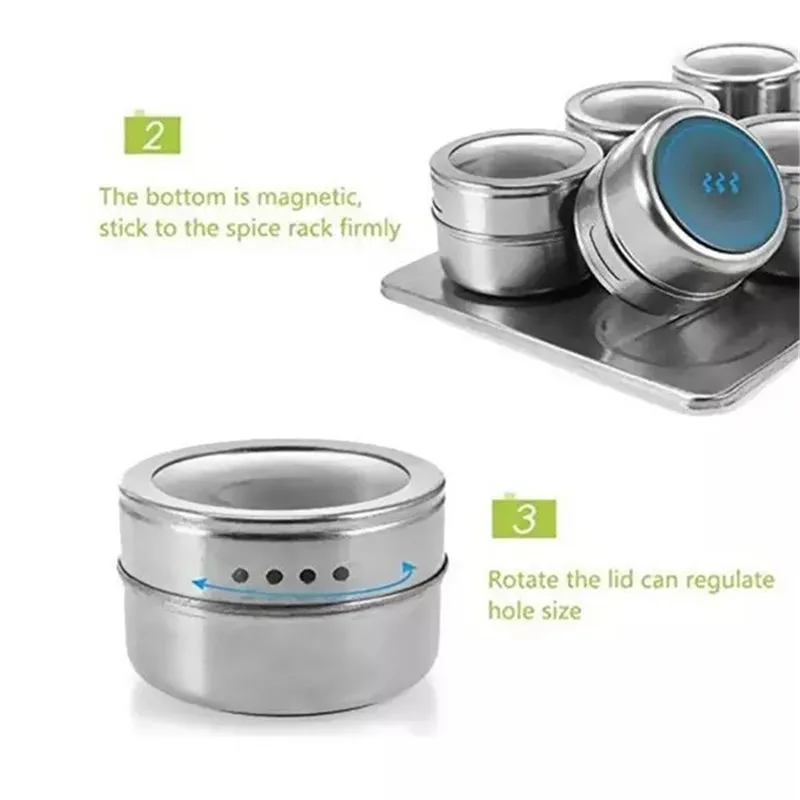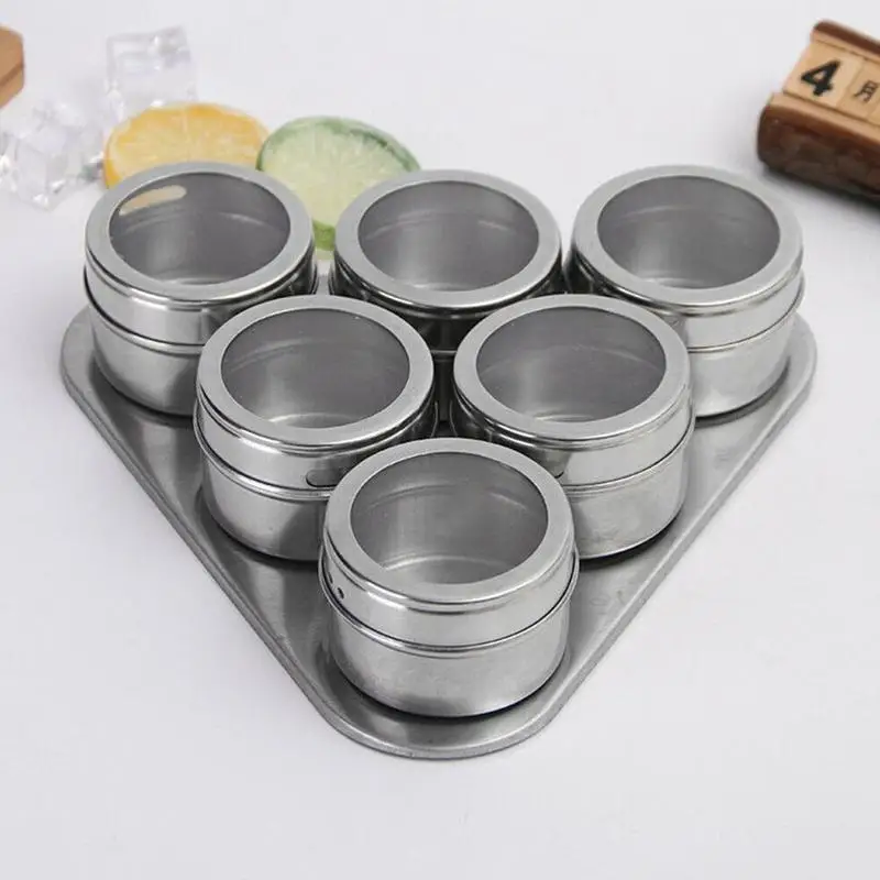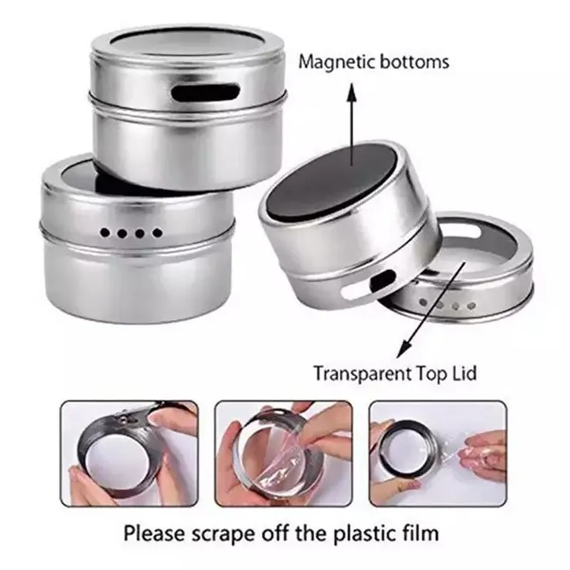 Magnetyczna puszka do przechowywania przypraw pojemniki, w tym dna, przyklejają się do dowolnej płaskiej metalowa powierzchnia, dzięki czemu można łatwo zorganizować inne przedmioty.