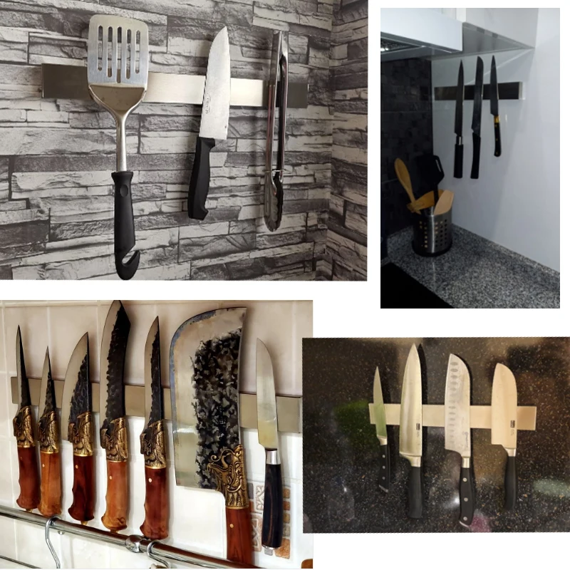 ★Silny magnes: ten nowoczesny premium 12/16/20 Cal magnetyczny nóż bar jest wykonany z silne magnesy i pokryte w elegancki, satyna wykończone, wysokiej jakości stali nierdzewnej, akcentując wszelkie dekoracja kuchenna. Nasze magnesy ze stali nierdzewnej zapewnią ci spokój, że wszystkie noże są bezpieczne podczas użytkowania.
