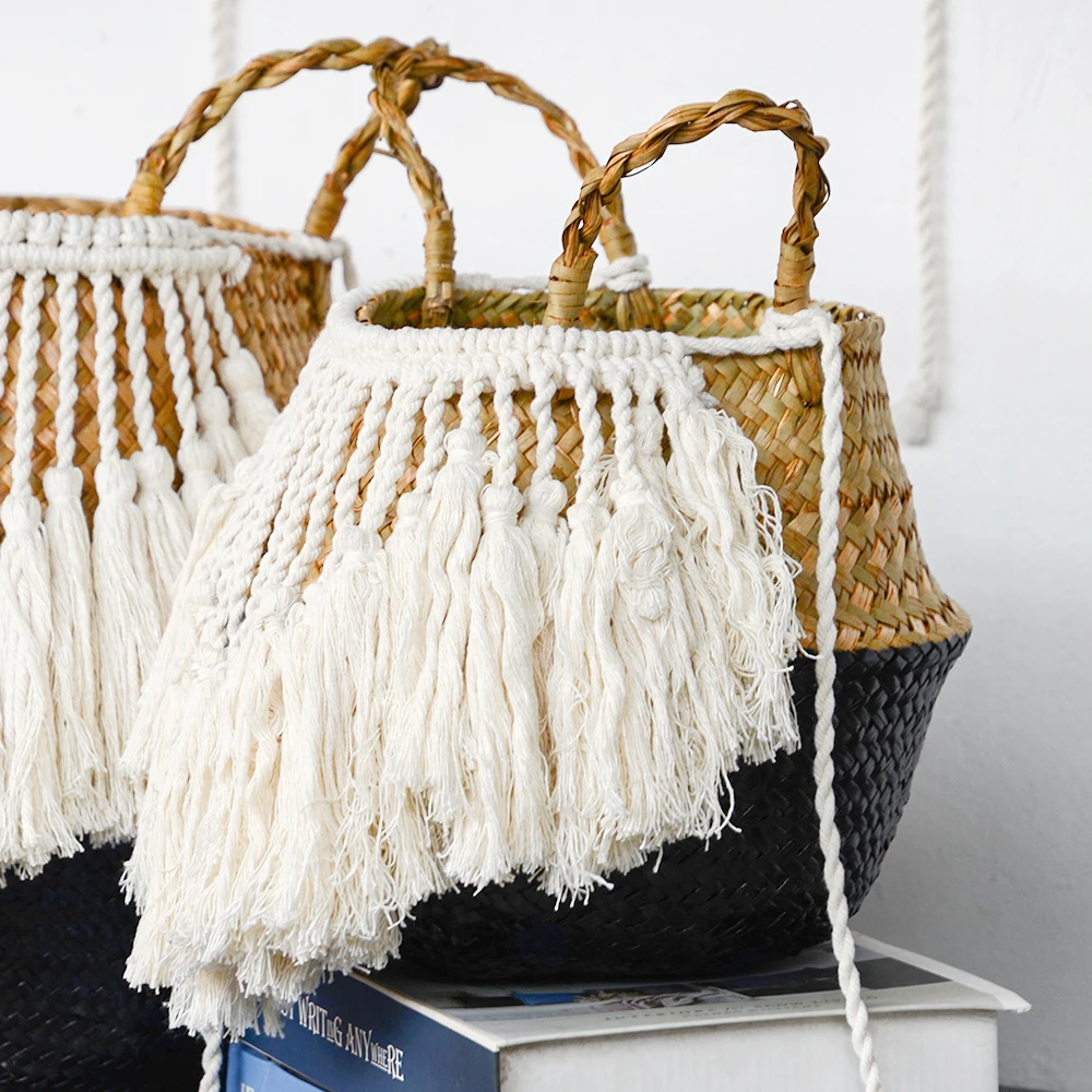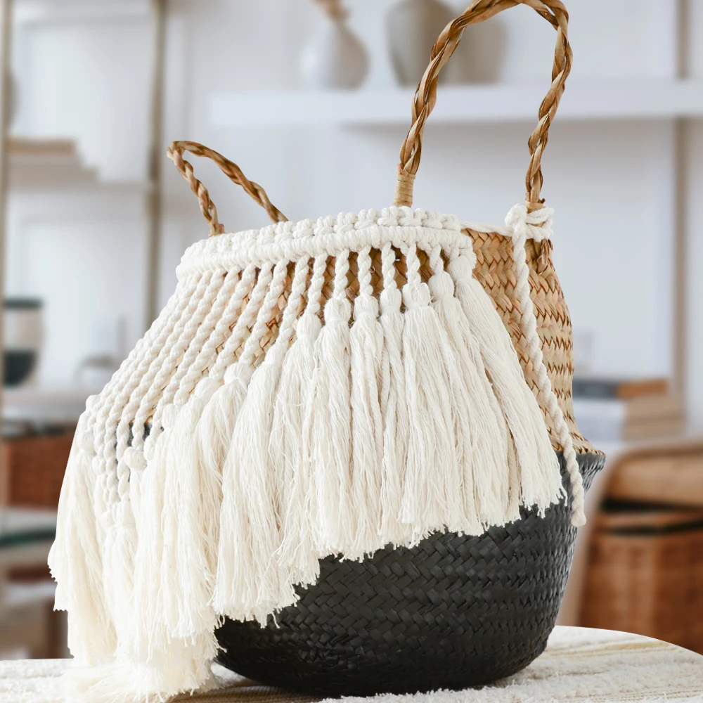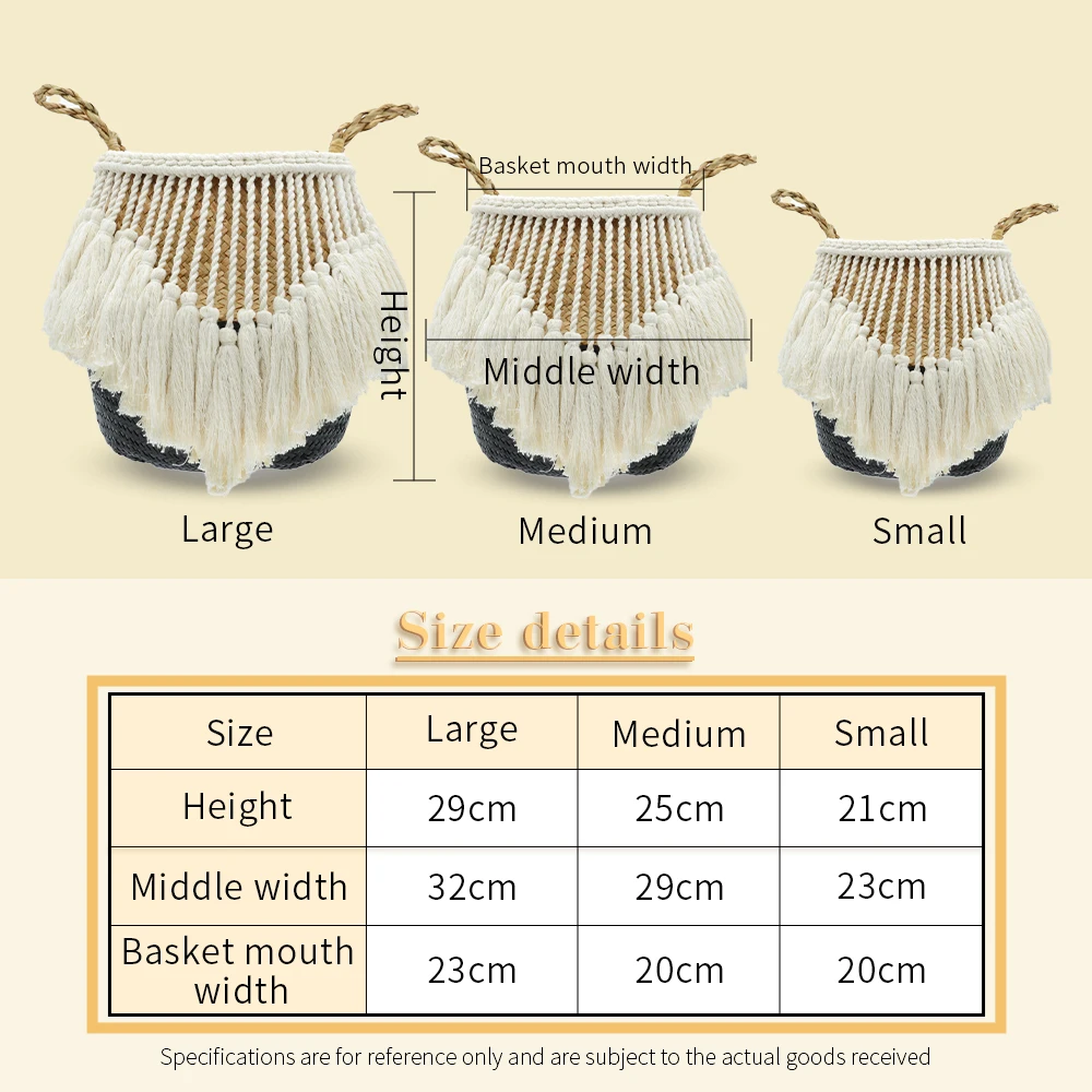 Uwaga: zawieszka z makramy jest przymocowana do uchwytu kosza zamiast być przywiązana wokół kosza.
