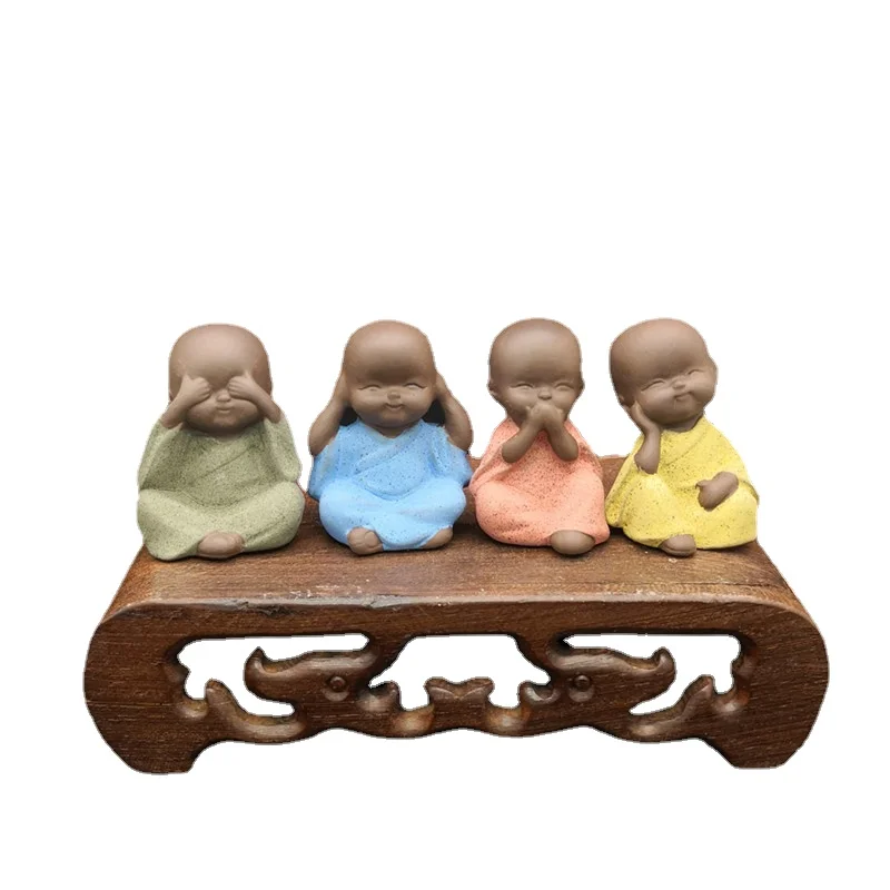Mały budda statuetka mnicha figurka tathagata indie joga Mandala tea pet fioletowy wyroby ceramiczne dekoracyjne ceramiczne ozdoby monk