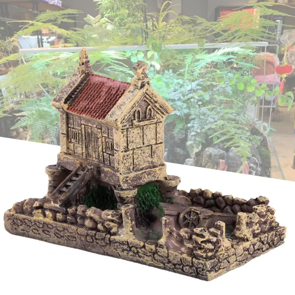Mały domek ekologiczny odporny na upadek żywica Mini domek Model statua ogród DIY dekoracja Bonsai do domu akcesoria