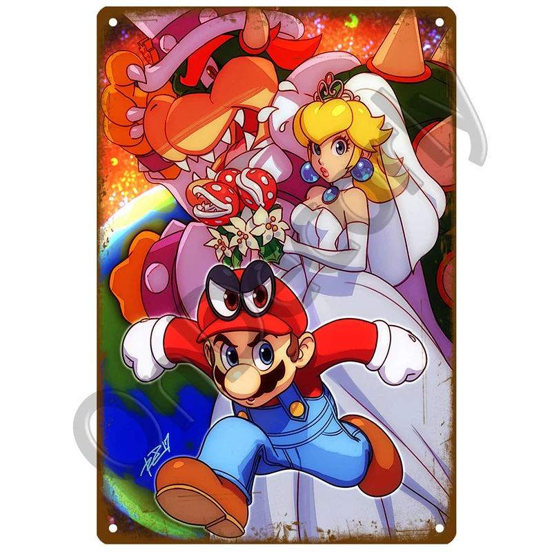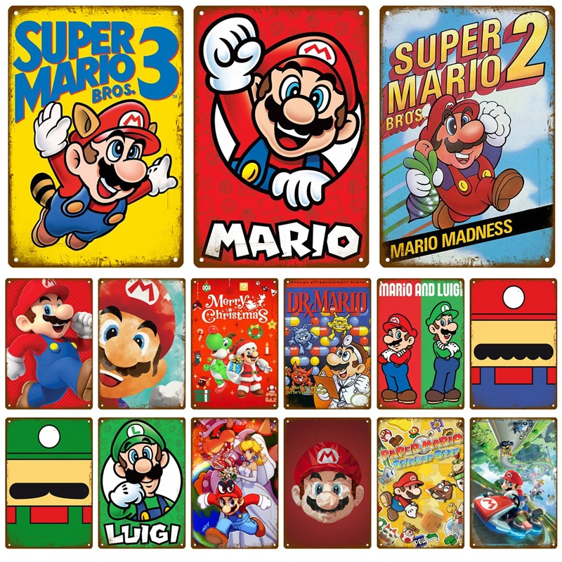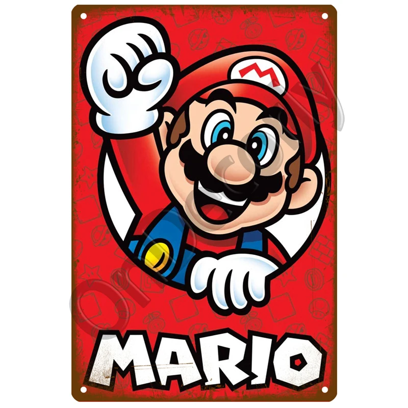Mario plakat z gry śliczne znaki ścienne wystrój Metal Vintage znak puszka Vintage metalowe płytki człowiek jaskinia Bar garaż Art blaszana puszka obrazy